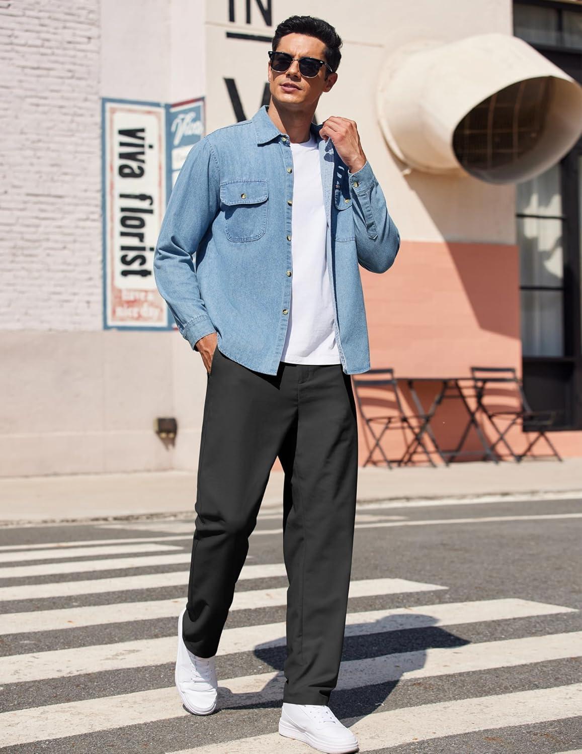 Men's Casual Slacks Relaxed Fit Flat Front Pant Cotton Chinos Pants