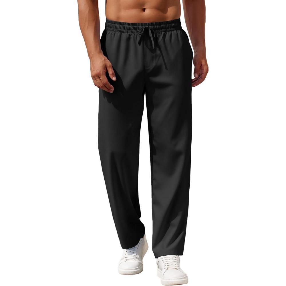 COOFANDY Mens Casual Pants Drawstring Elastic Waist Pants Linen Summer Beach Pants(Black)