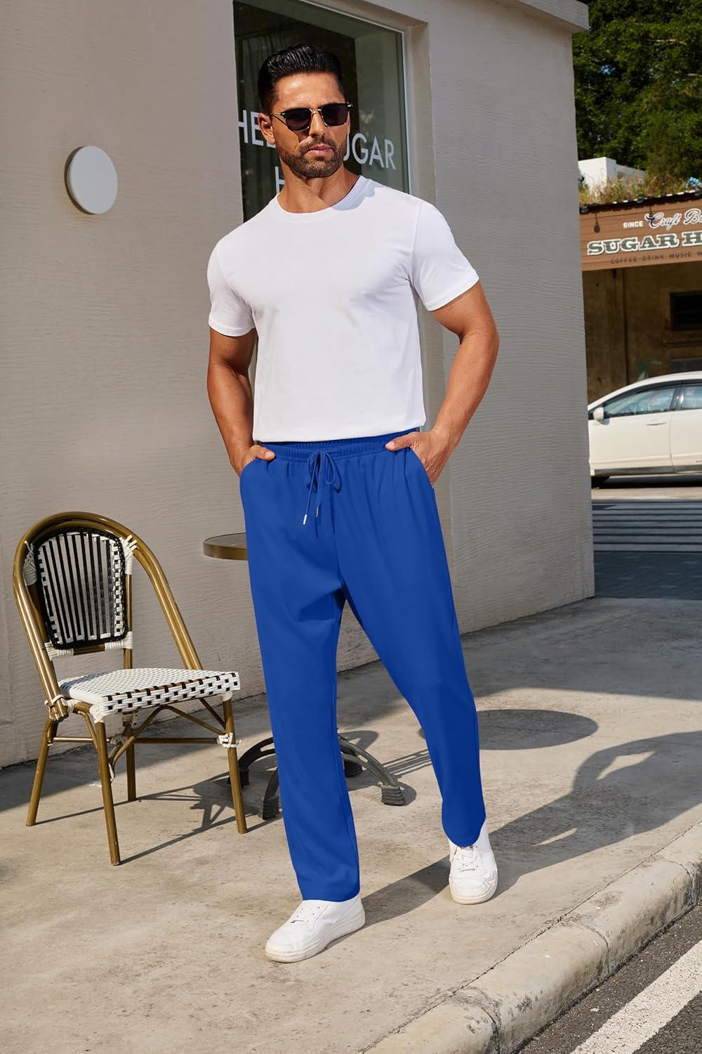 COOFANDY Men’s Casual Pants Waffle Knit Yoga Pants Lightweight Sweatpants Open Bottom Lounge Trousers(Royal Blue)
