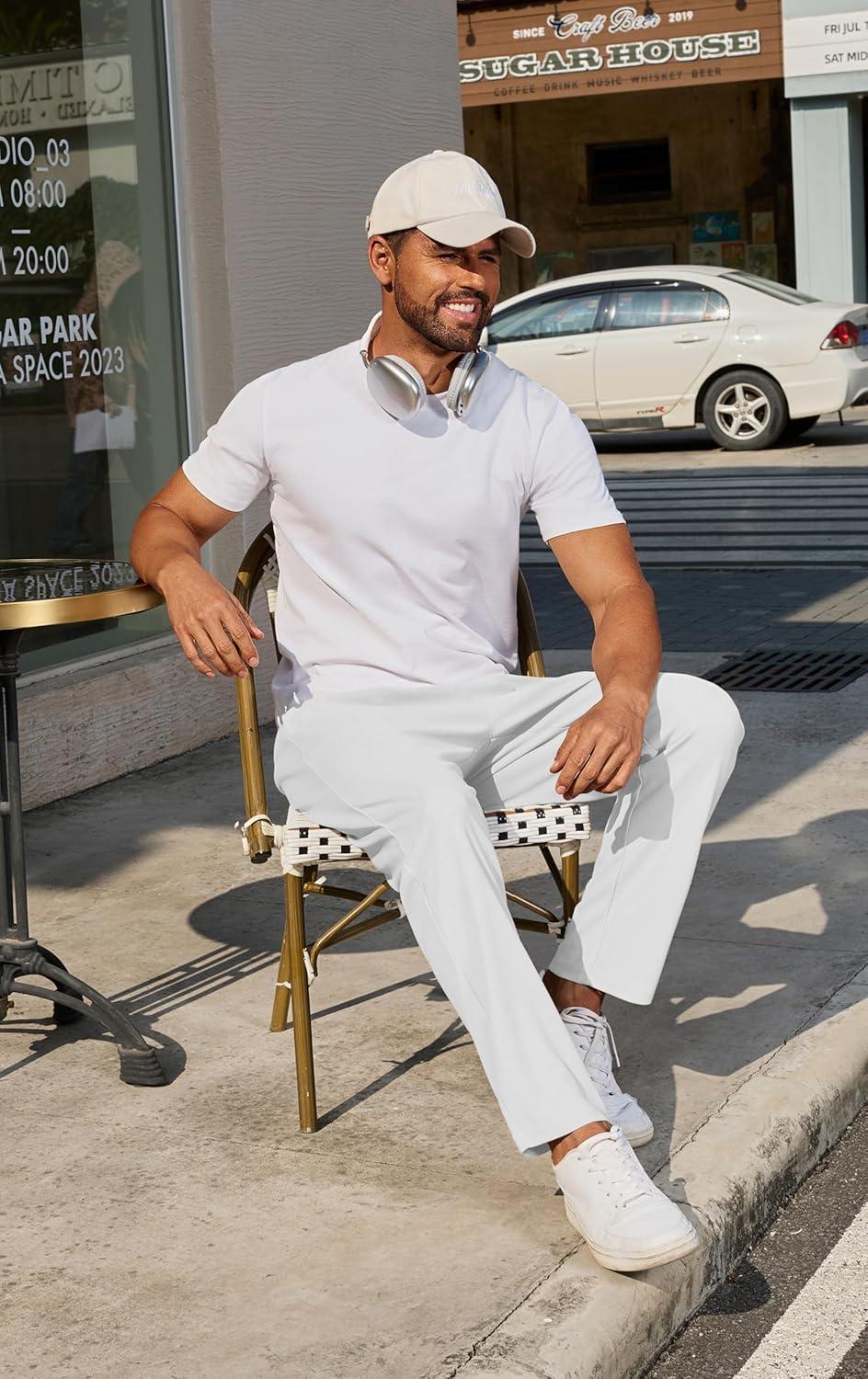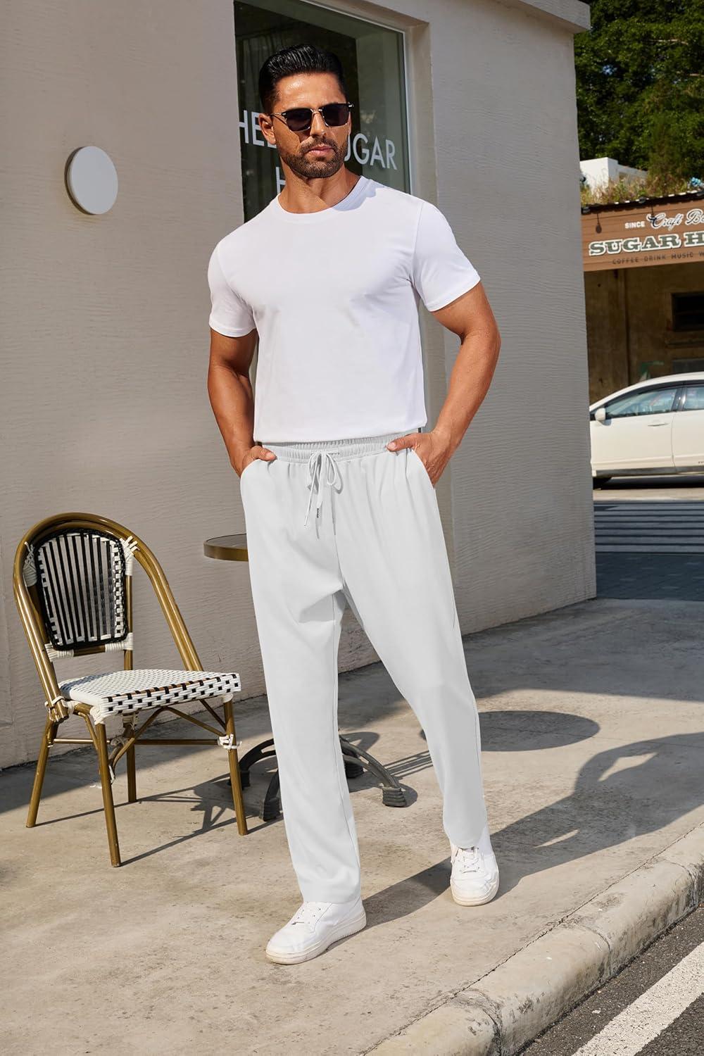 COOFANDY Men’s Casual Pants Waffle Knit Yoga Pants Lightweight Sweatpants Open Bottom Lounge Trousers(White)