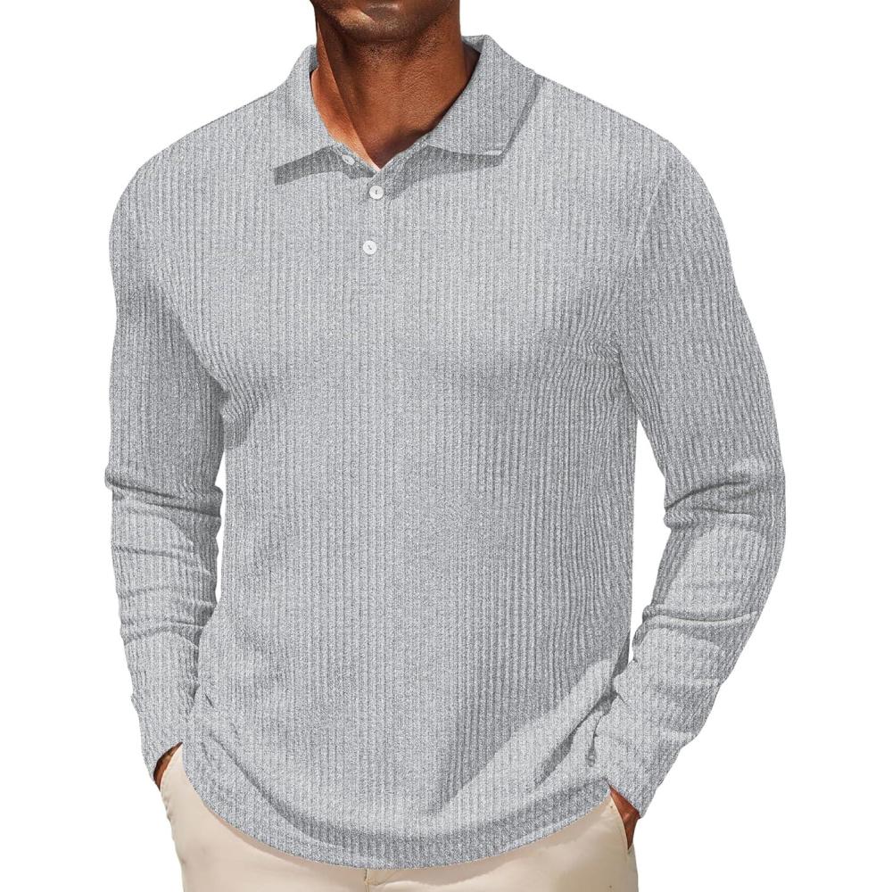 COOFANDY Men’s Casual Polo Shirts Long Sleeve Textured Knit Tee Shirt Wrok Tshirts(Light Grey)