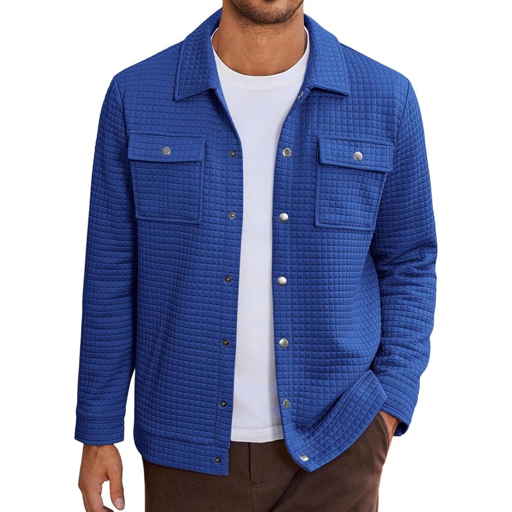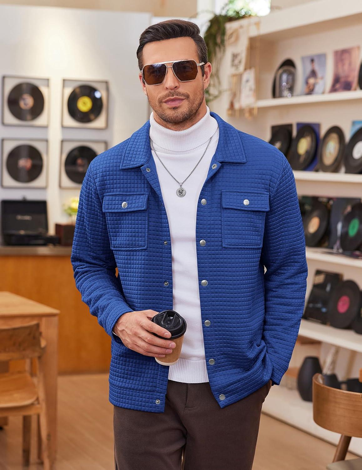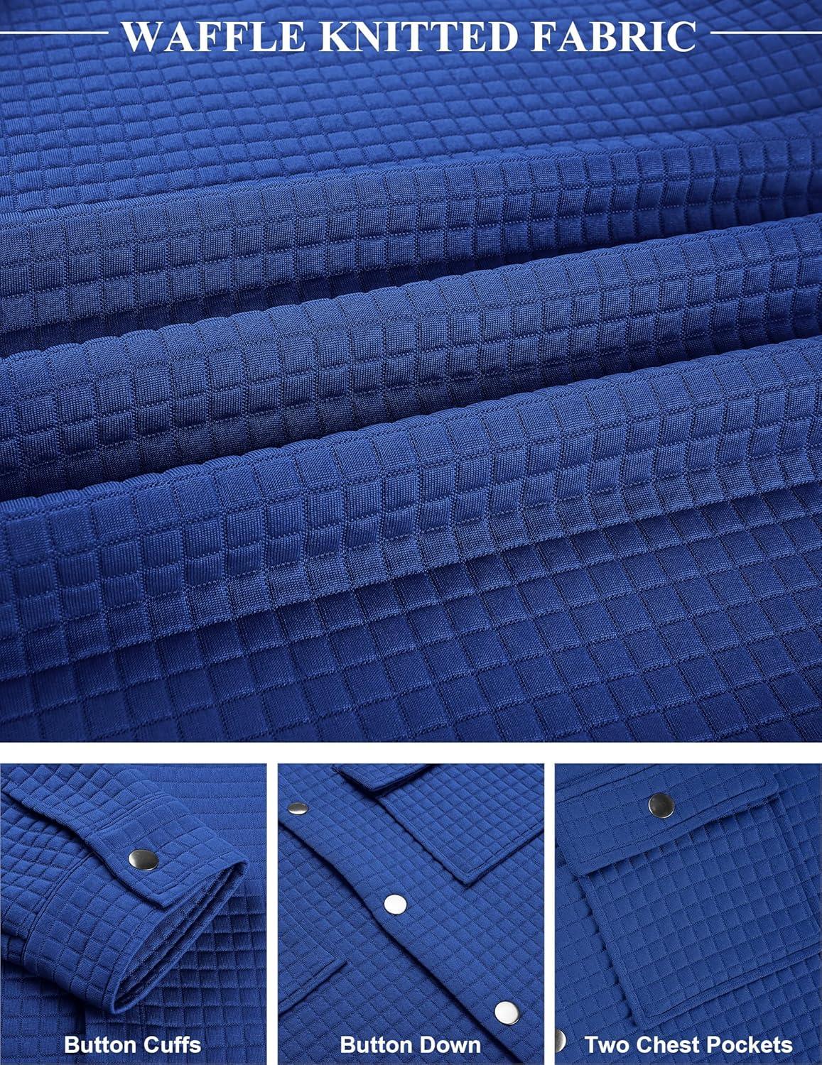 COOFANDY Mens Casual Shirt Jacket Button Down Waffle Jacket Long Sleeve Sweater Jackets Quilted Shacket Overshirt(Dark Blue)