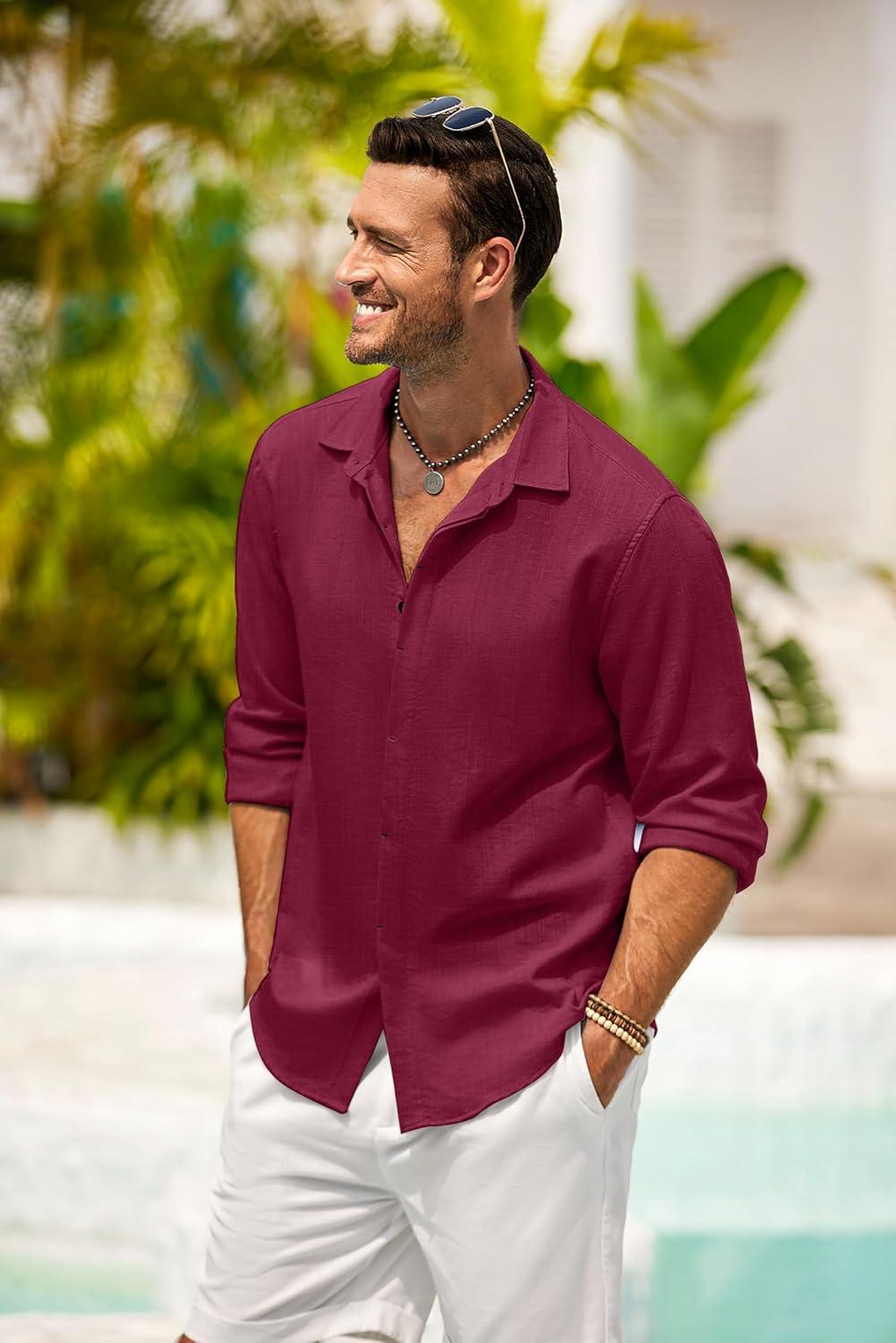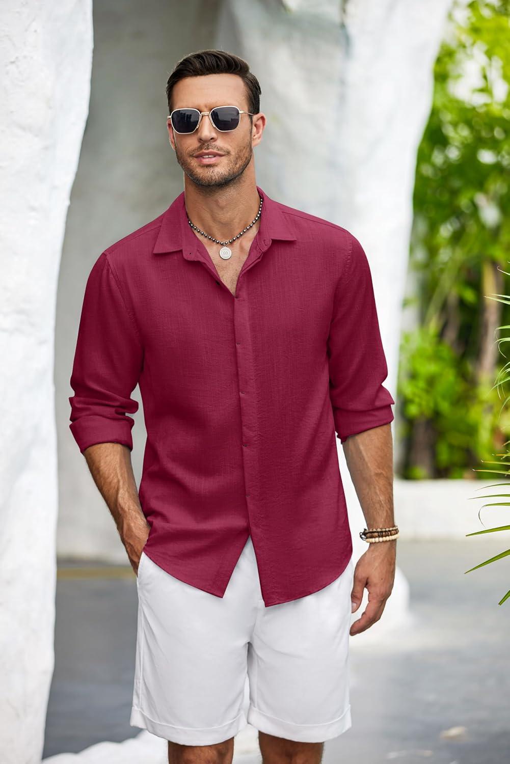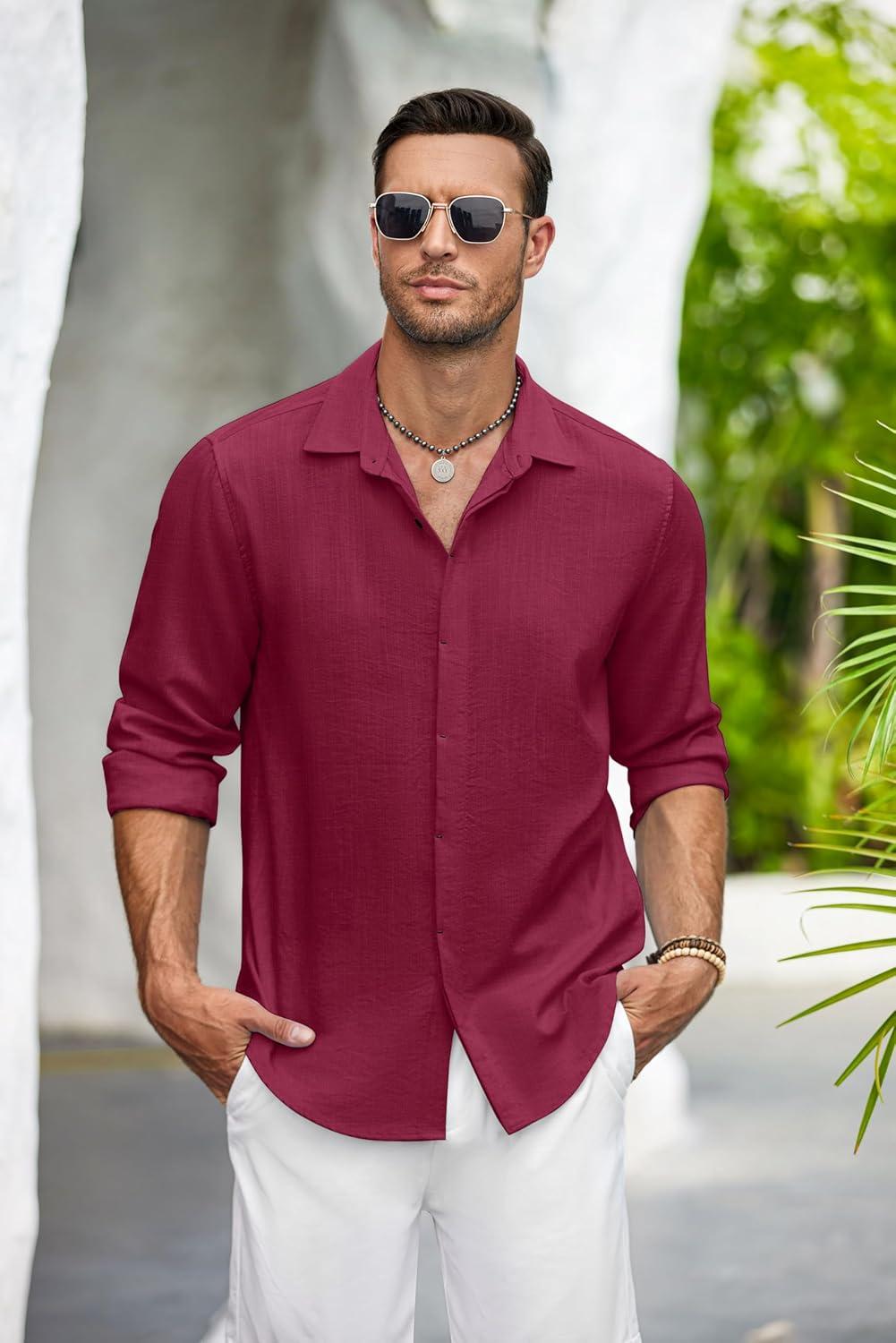 COOFANDY Men’s Casual Shirt Long Sleeve Casual Button Down Shirt for Men Summer Beach Wedding Shirt(Burgundy)