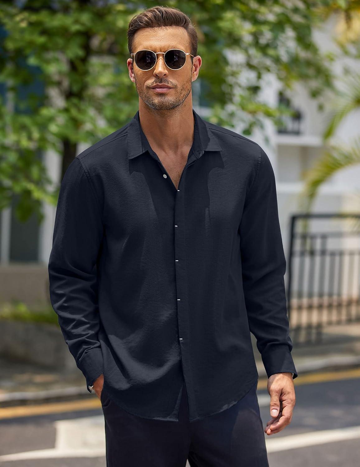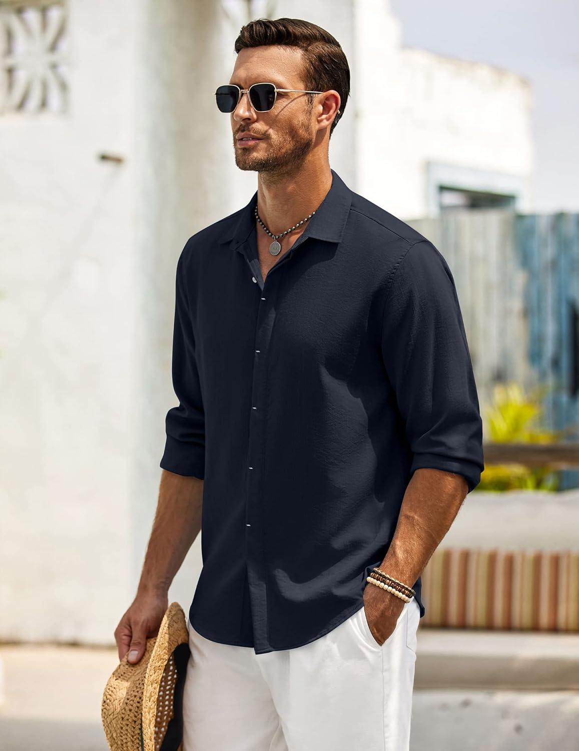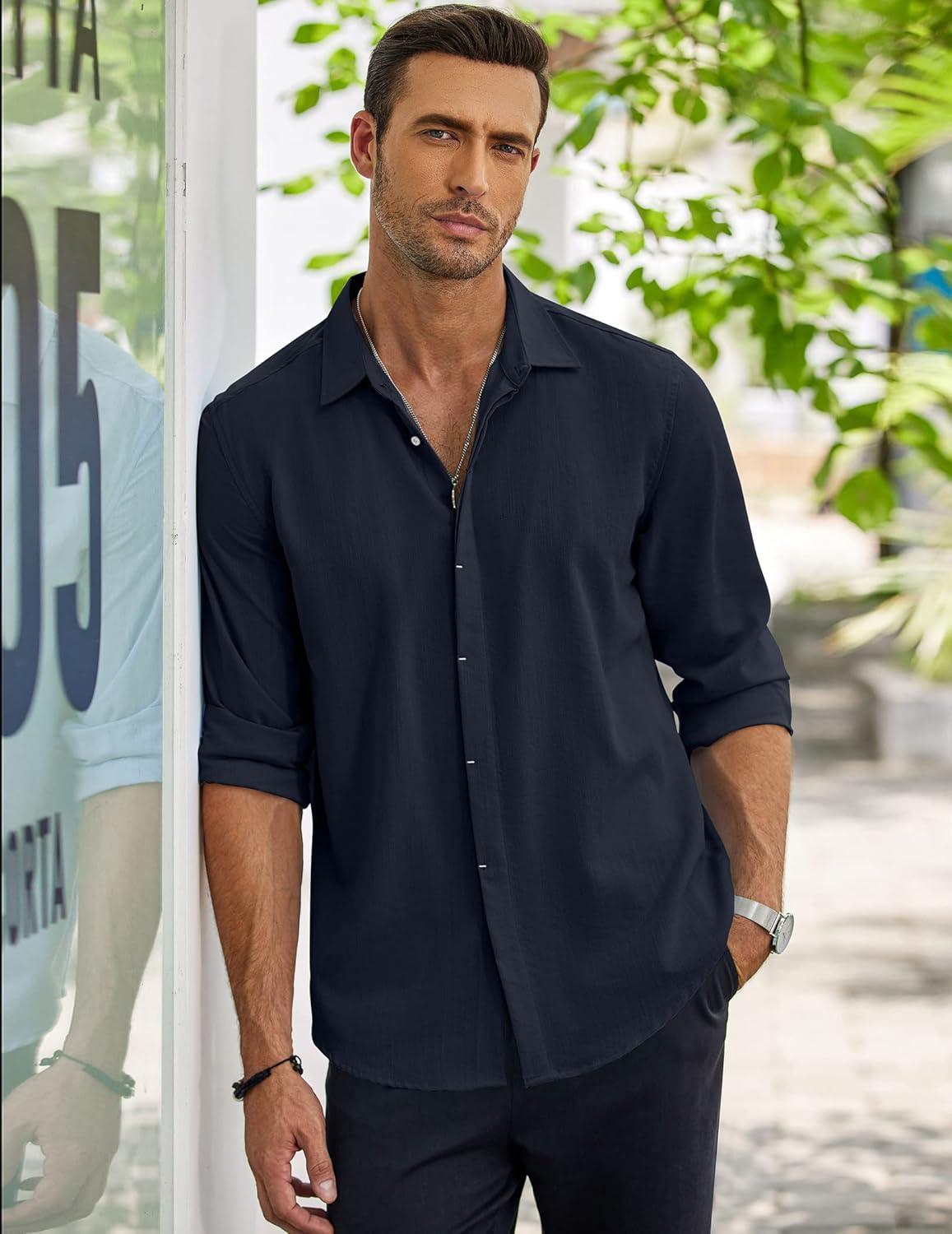COOFANDY Men’s Casual Shirt Long Sleeve Casual Button Down Shirt for Men Summer Beach Wedding Shirt(Persian Blue)