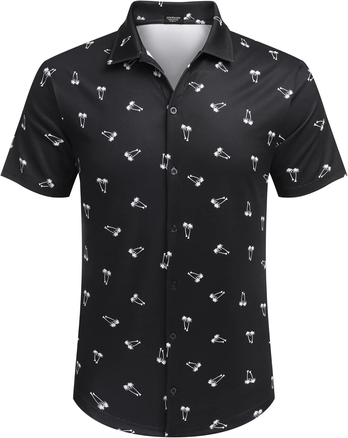COOFANDY Mens Casual Shirts Short Sleeve Button Down Shirt Wrinkle Free Summer Shirt(Black Palm Tree)