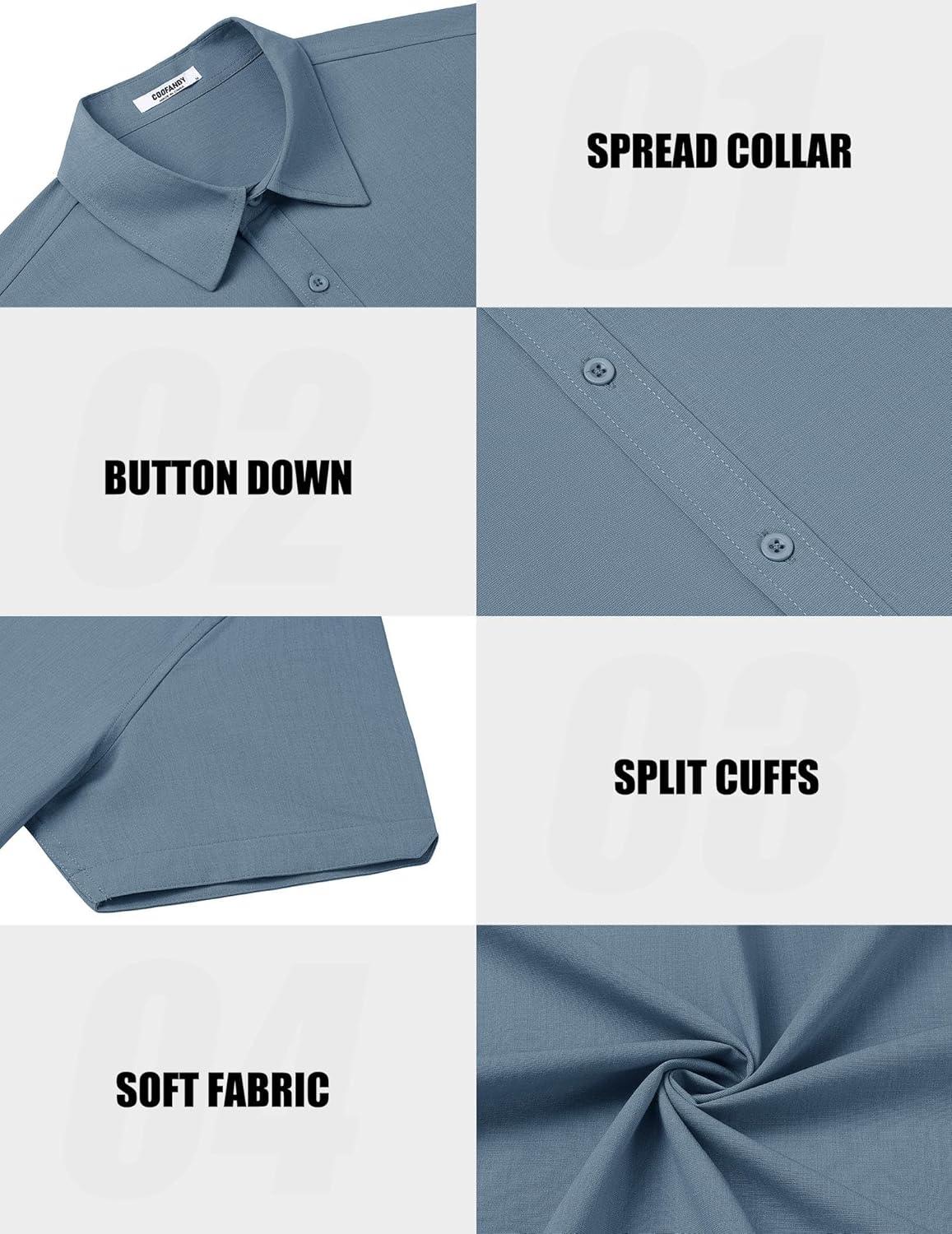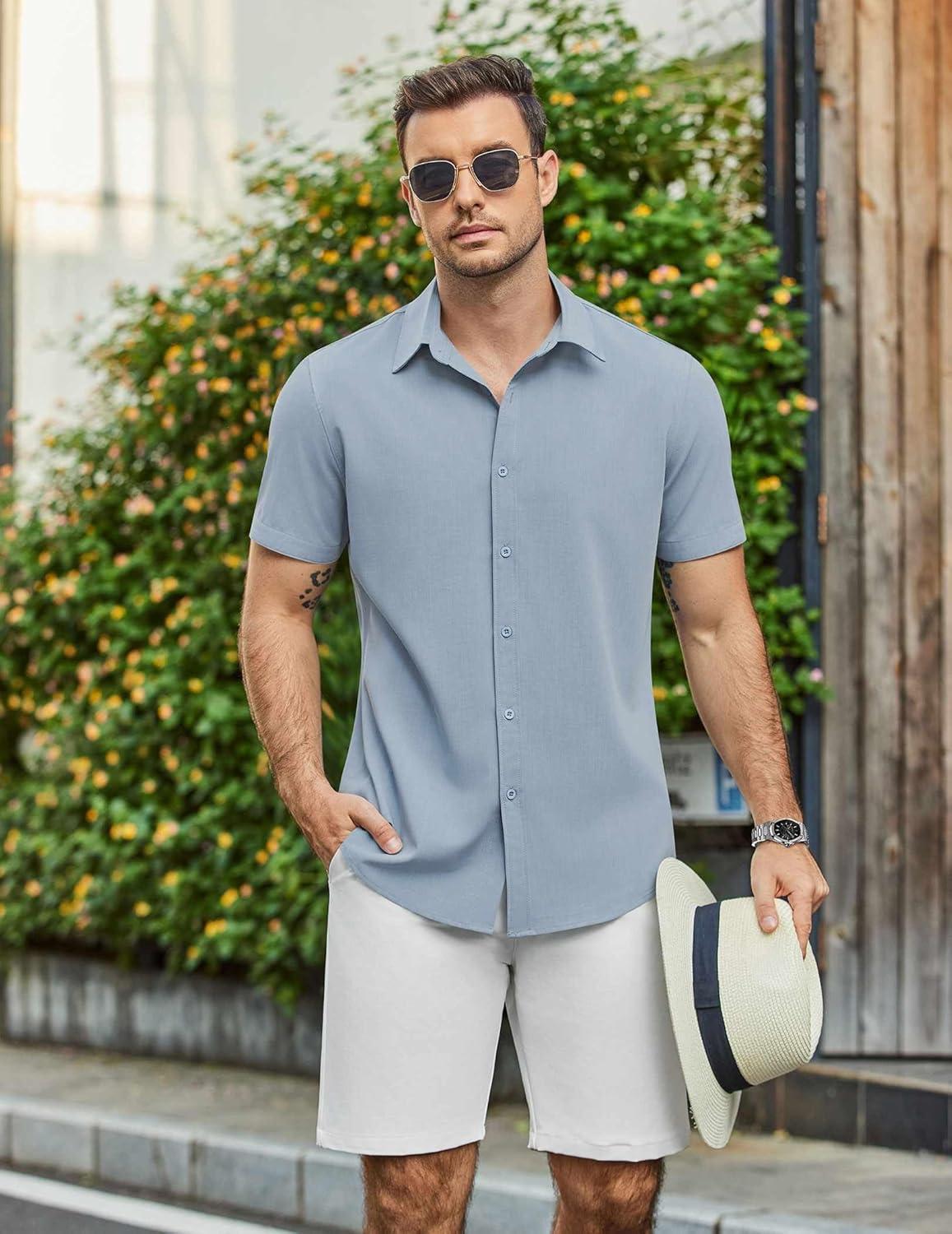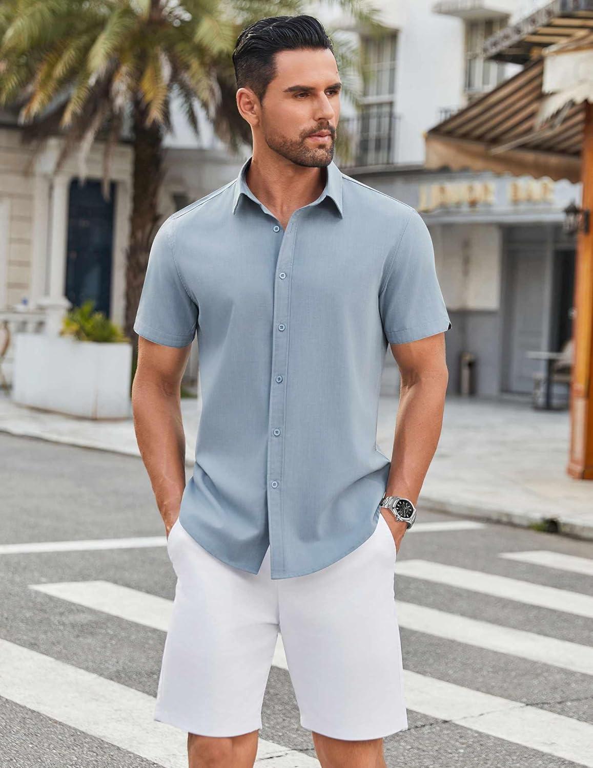 COOFANDY Mens Casual Shirts Short Sleeve Button Down Shirt Wrinkle Free Summer Shirt(Light Blue)