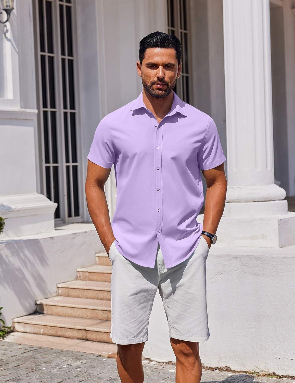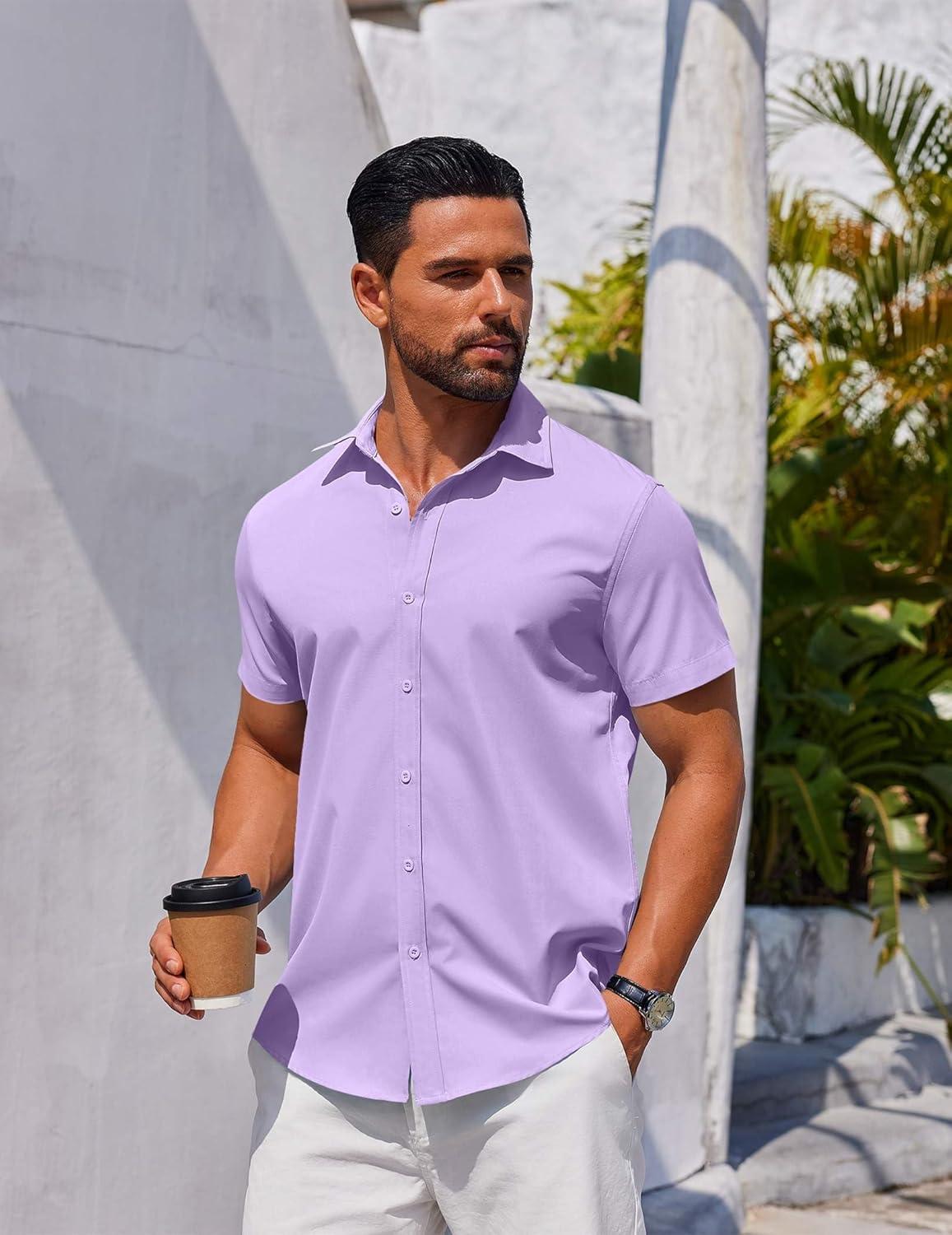 COOFANDY Mens Casual Shirts Short Sleeve Button Down Shirt Wrinkle Free Summer Shirt(Lilac)