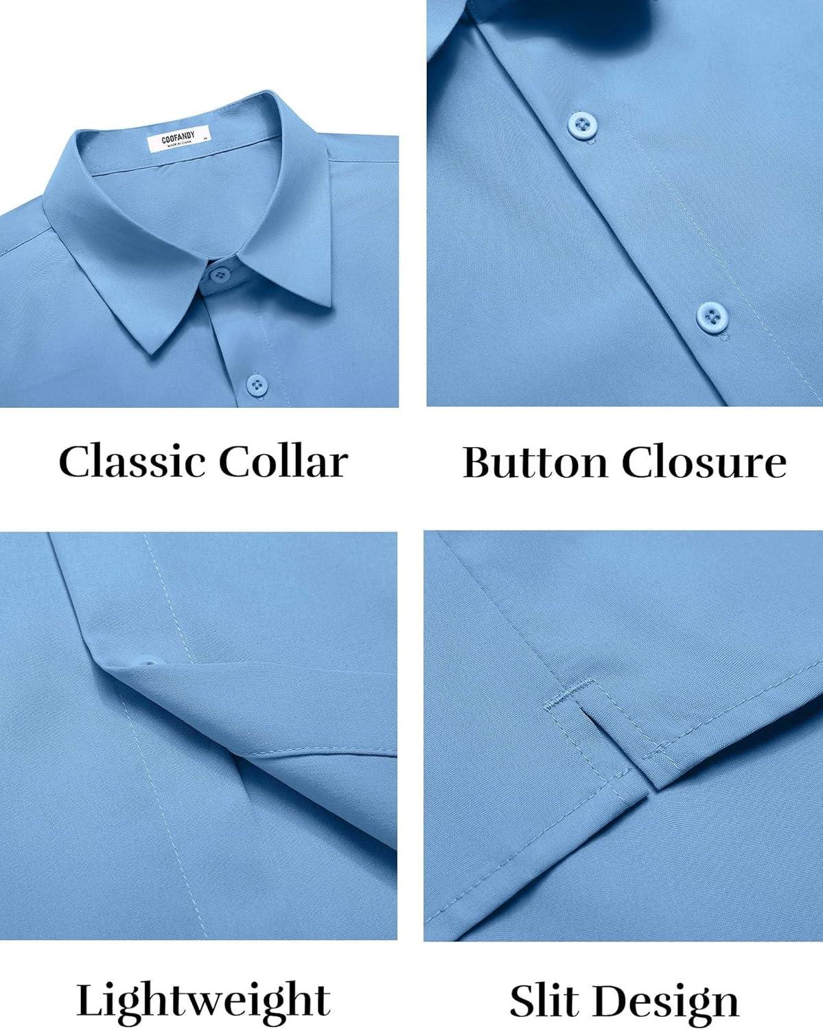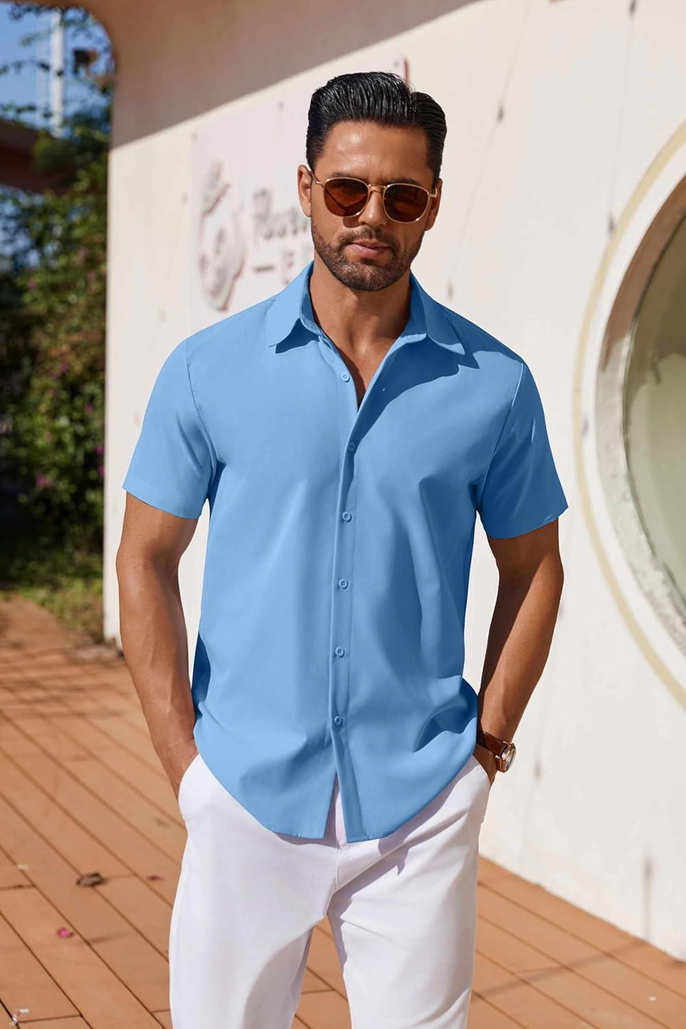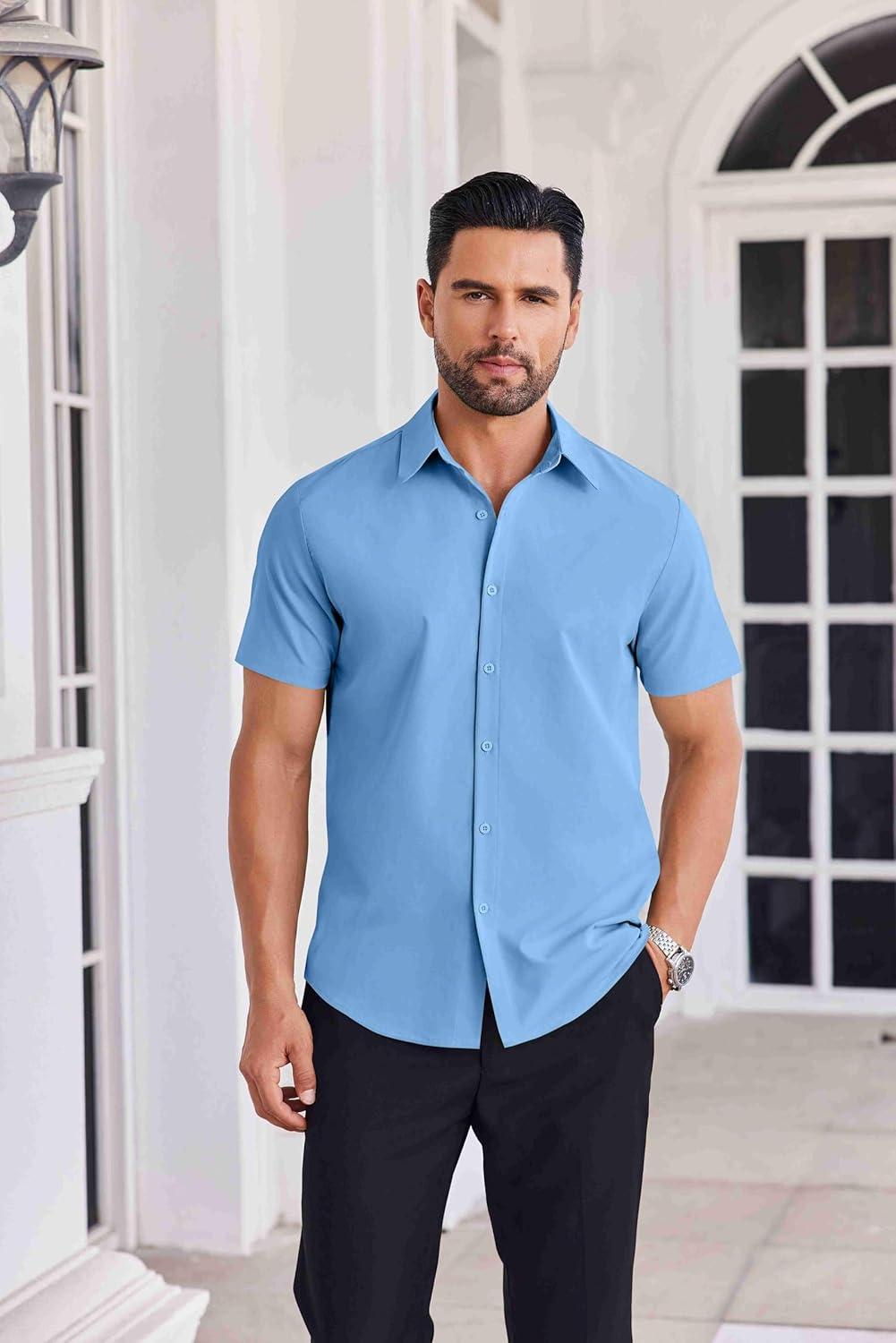 COOFANDY Mens Casual Shirts Short Sleeve Button Down Shirt Wrinkle Free Summer Shirt(Sky Blue)