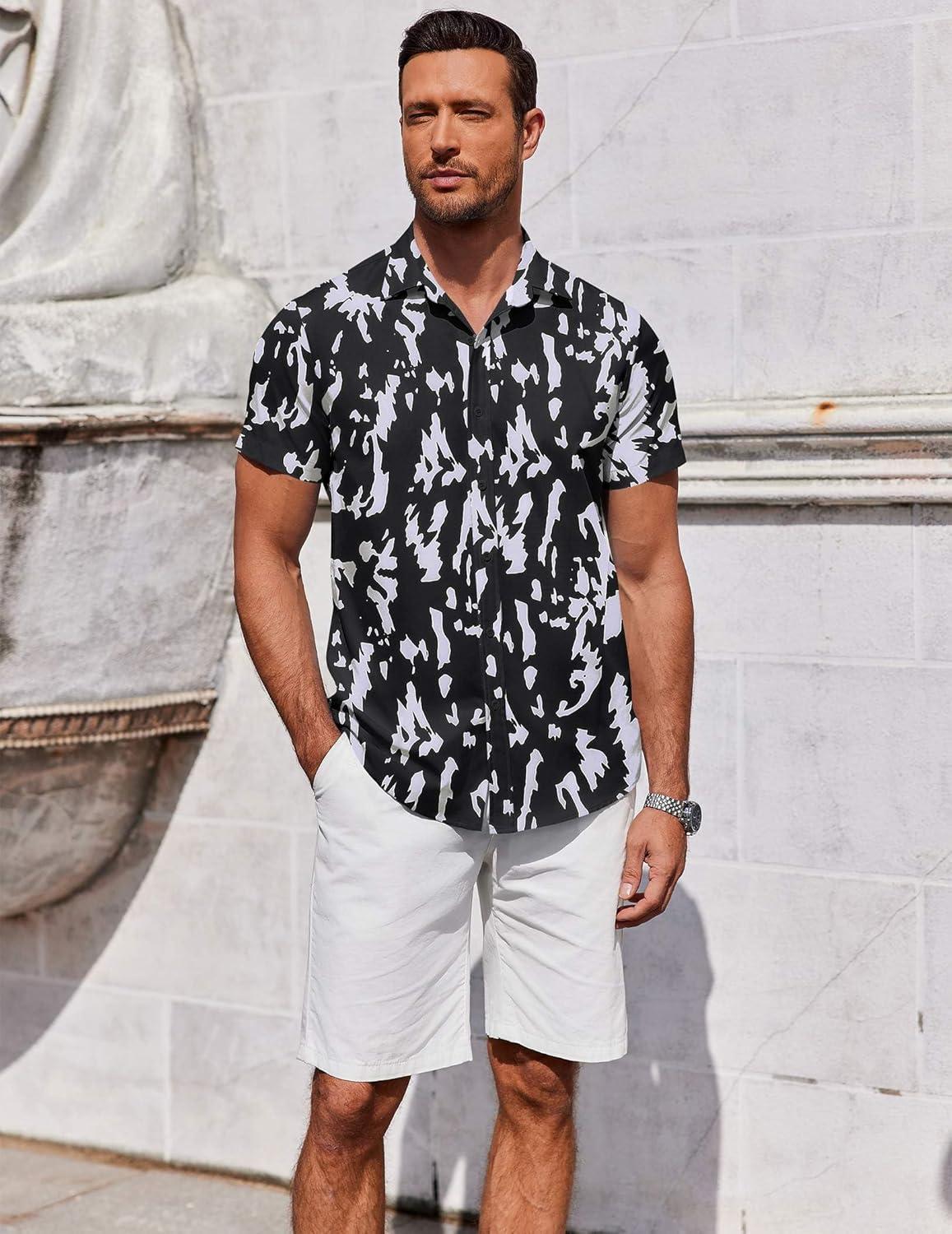 COOFANDY Mens Casual Shirts Short Sleeve Button Down Shirt Wrinkle Free Summer Shirt(White-black Abstract)