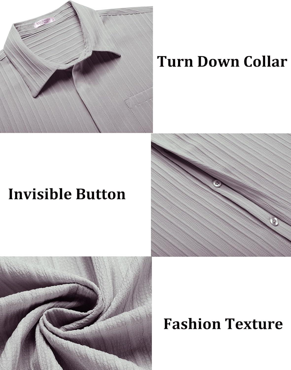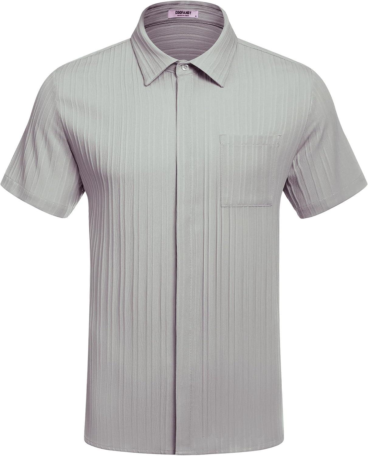 COOFANDY Mens Casual Shirts Short Sleeve Button Down Shirts Fashion Textured Summer Beach Shirt(Light Gray)