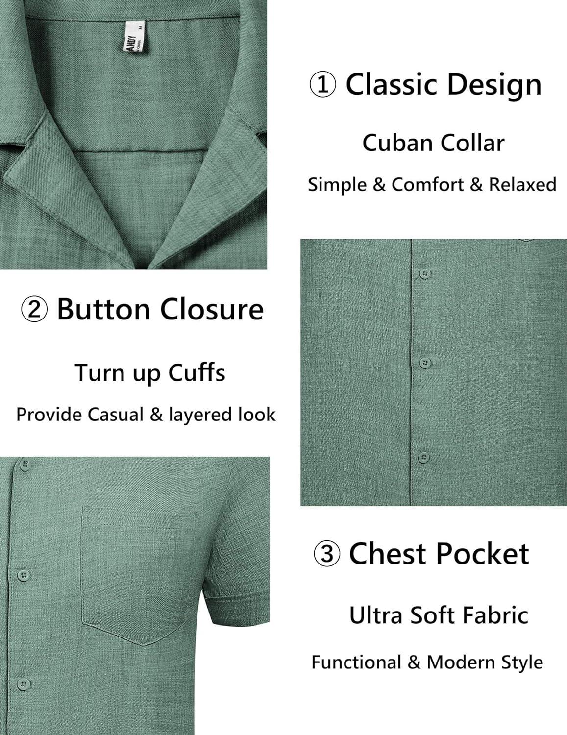 COOFANDY Mens Casual Short Sleeve Button Down Shirts Cuban Linen Textured Shirt Summer Beach Wear(Grey Green)