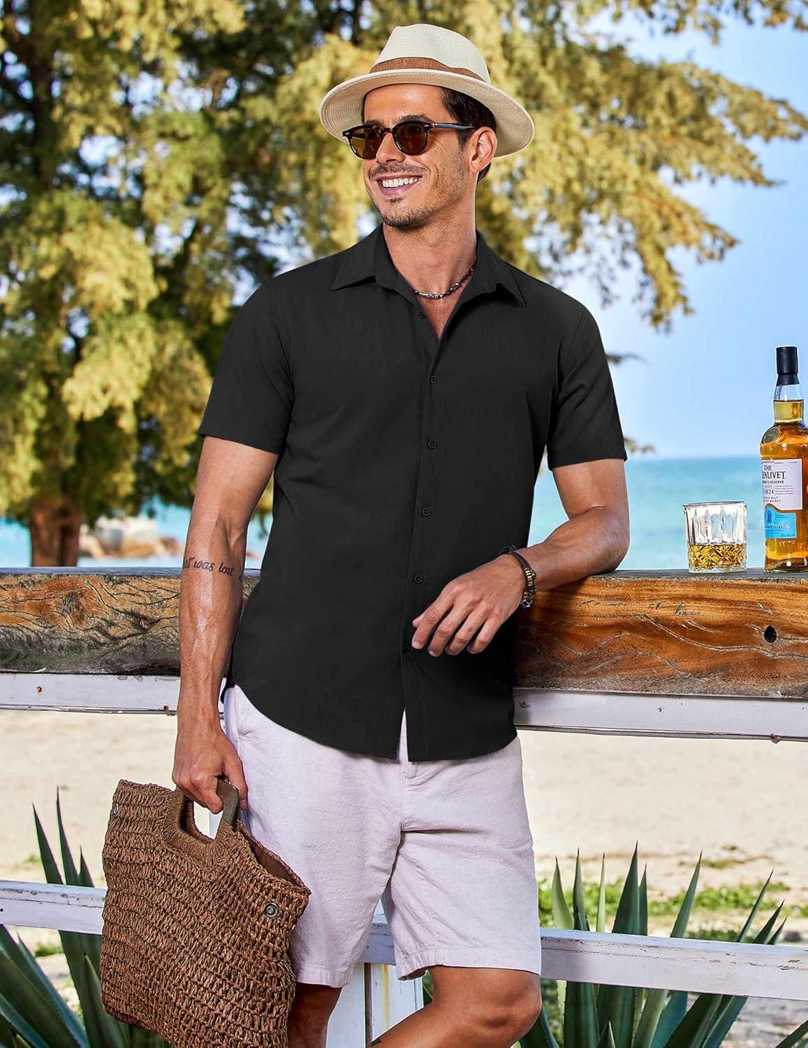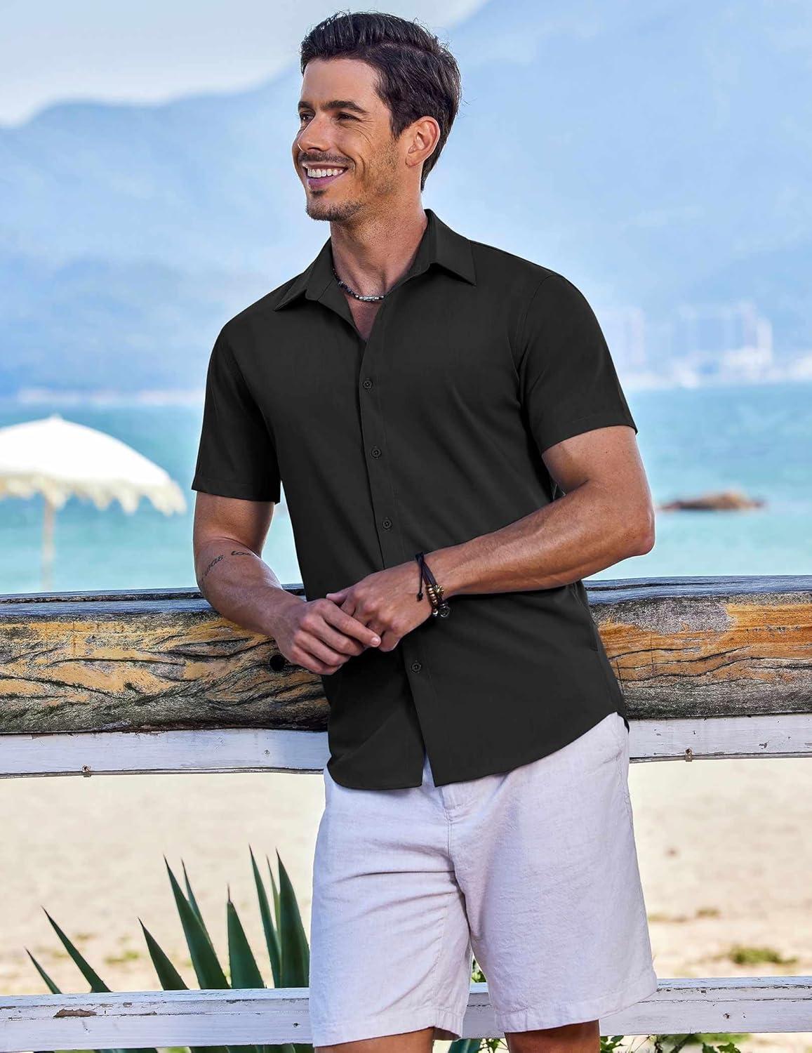 COOFANDY Mens Casual Short Sleeve Button Down Shirts Summer Untucked Wrinkle Free Shirts(Black)