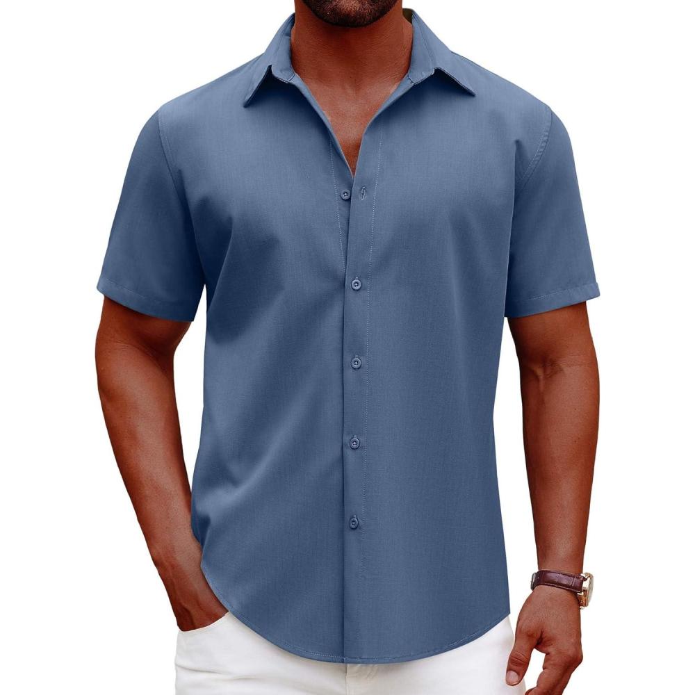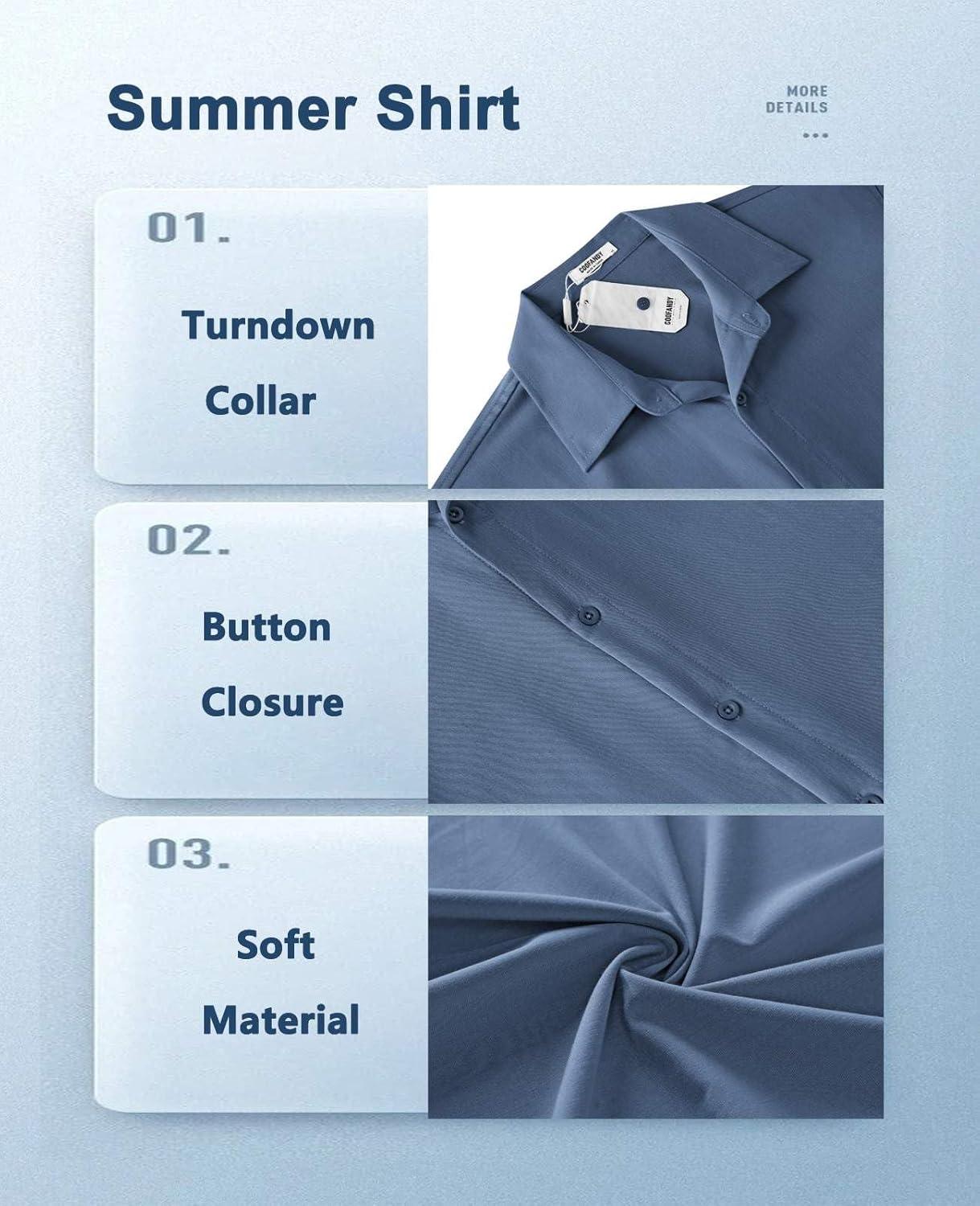 COOFANDY Mens Casual Short Sleeve Button Down Shirts Summer Untucked Wrinkle Free Shirts(Denim Blue)