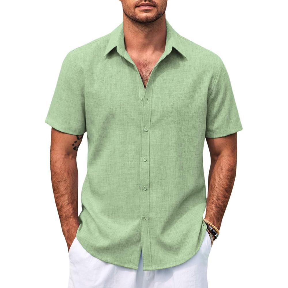 COOFANDY Mens Casual Short Sleeve Button Down Shirts Summer Untucked Wrinkle Free Shirts(Ice Green)