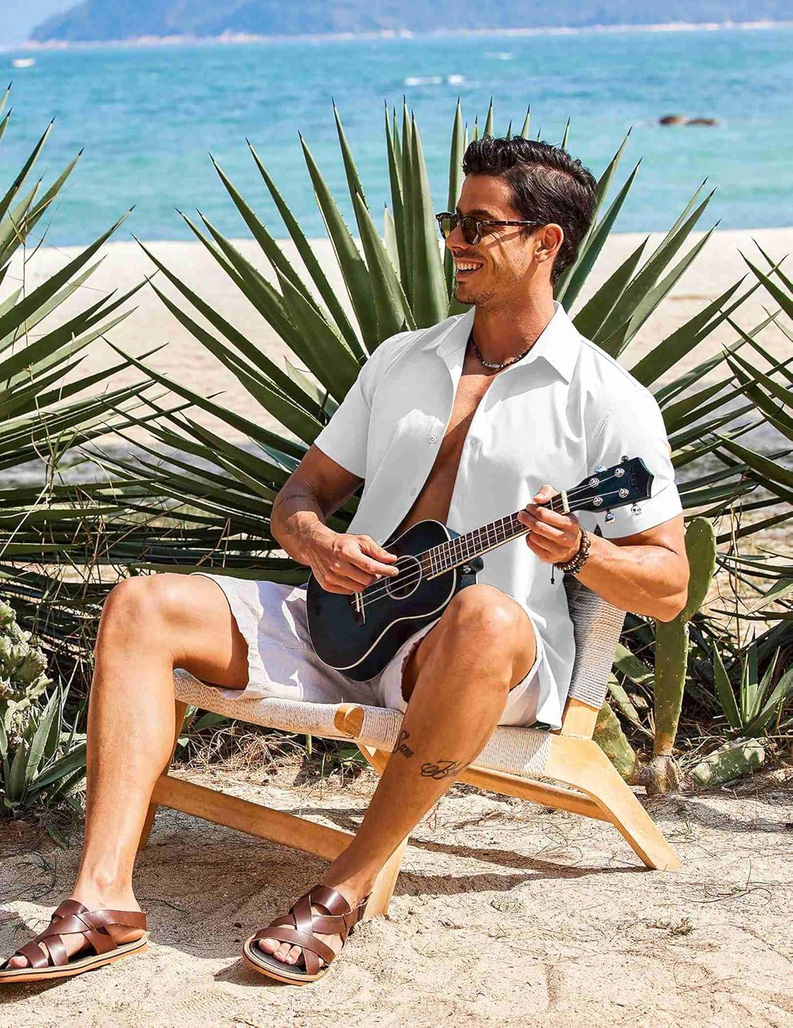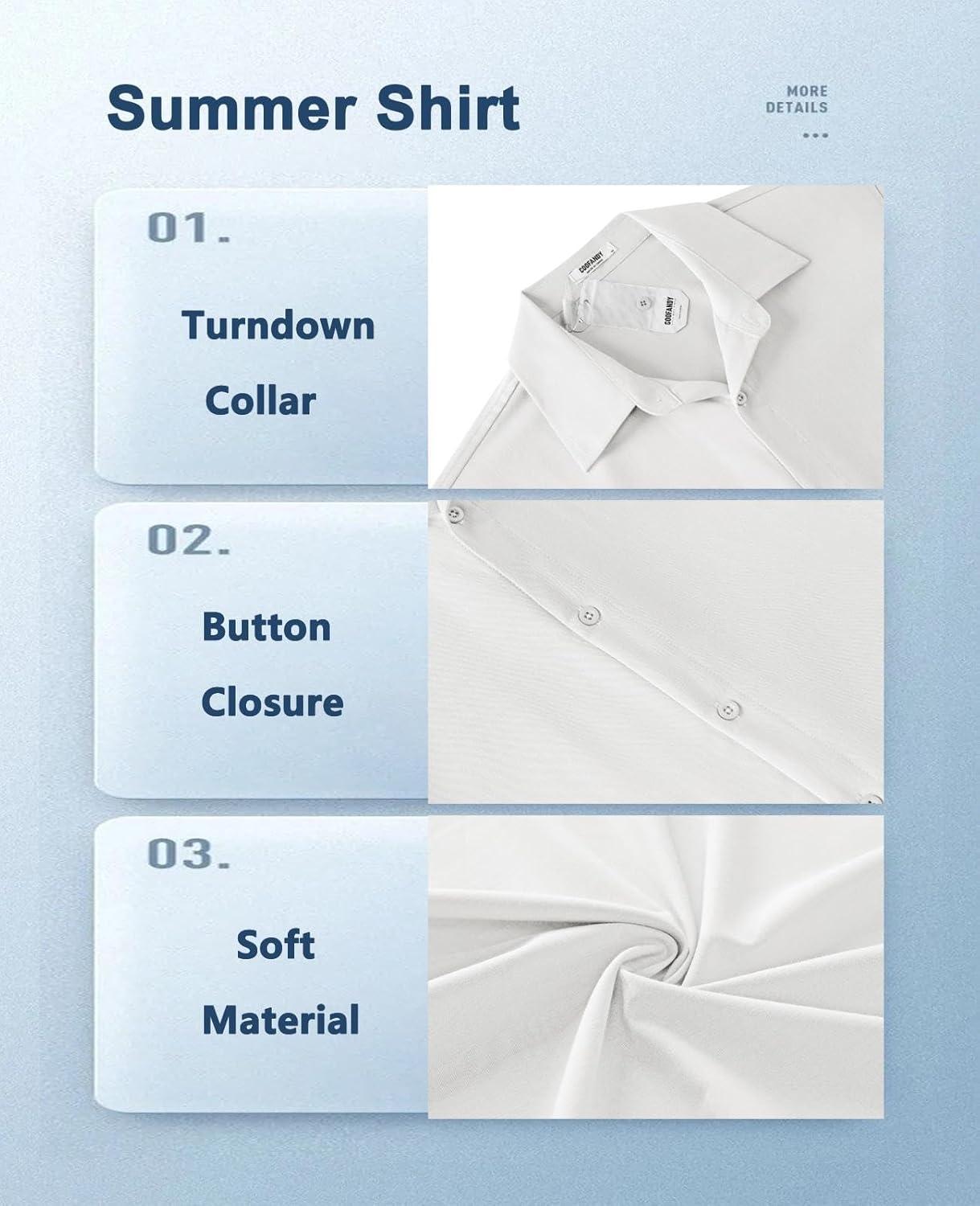 COOFANDY Mens Casual Short Sleeve Button Down Shirts Summer Untucked Wrinkle Free Shirts(White)