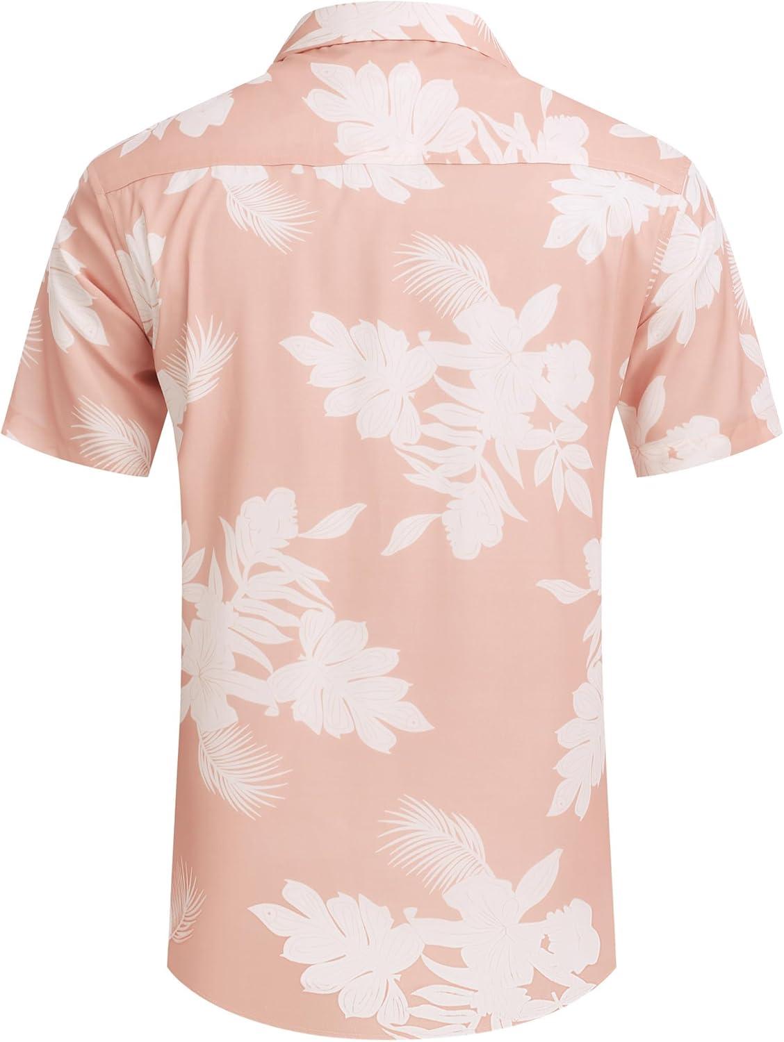 COOFANDY Mens Casual Short Sleeve Shirts Summer Beach Shirt Button Down Textured Shirts Vacation Hawaiian Shirts(Pink / White Floral)