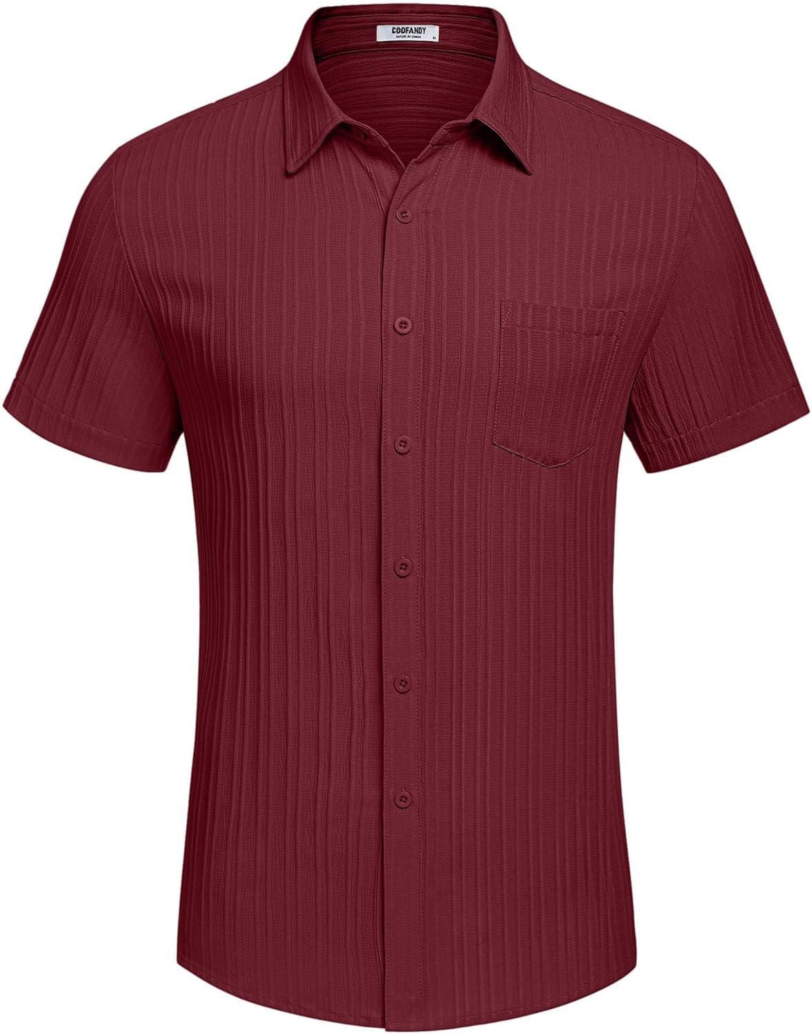 COOFANDY Mens Casual Short Sleeve Shirts Summer Beach Shirt Button Down Textured Shirts Vacation Hawaiian Shirts(Wine Red)
