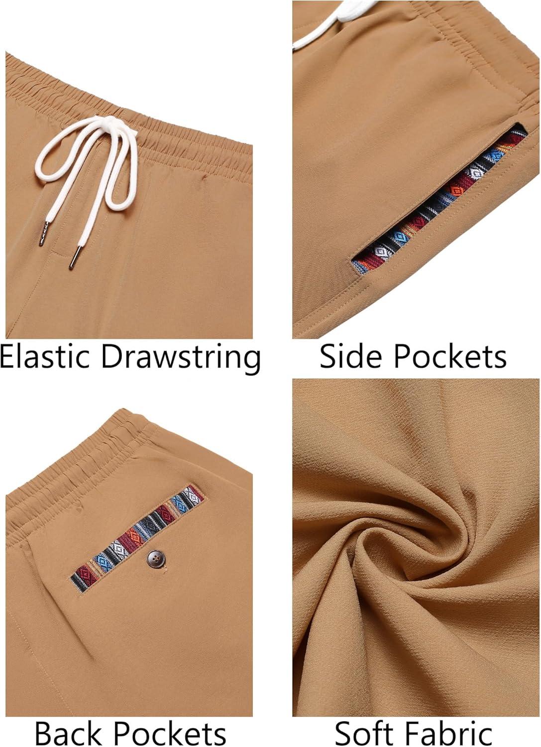 COOFANDY Mens Casual Shorts 5″ Elastic Drawstring Shorts Summer Beach Athletic Shorts(Khaki)