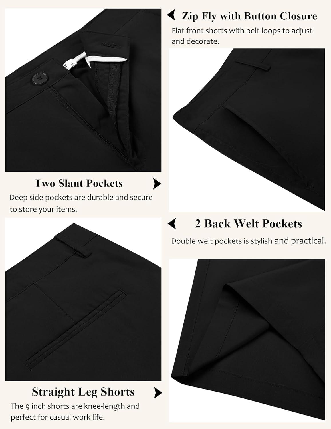 COOFANDY Men’s Casual Shorts 9 Inch Flat Front Lightweight Summer Beach Vacation Shorts(Black)