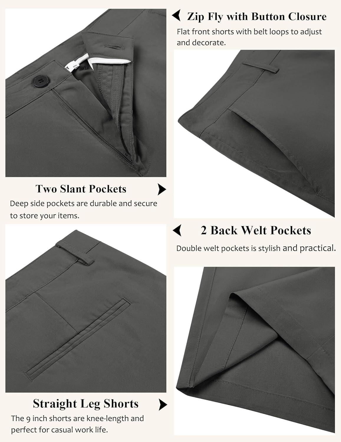 COOFANDY Men’s Casual Shorts 9 Inch Flat Front Lightweight Summer Beach Vacation Shorts(Drak Grey)