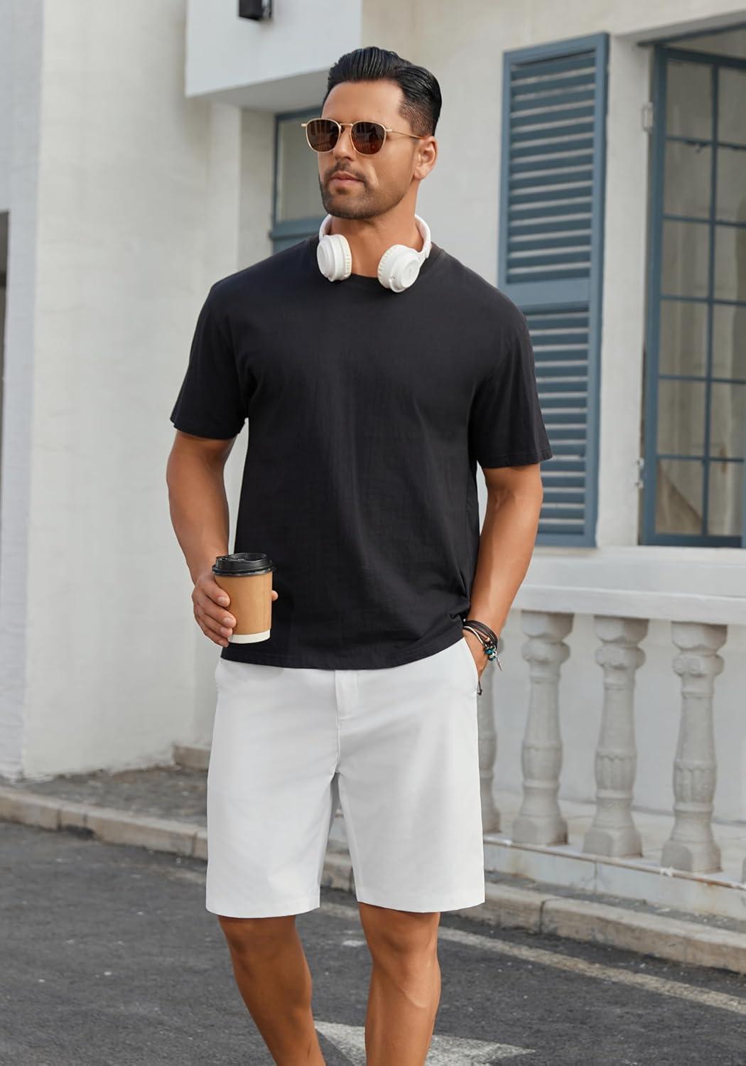COOFANDY Men’s Casual Shorts 9 Inch Flat Front Lightweight Summer Beach Vacation Shorts(White)