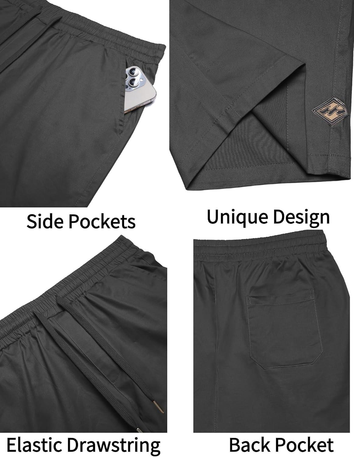 COOFANDY Mens Casual Shorts Cotton Elastic Drawstring Shorts Summer Beach Chino Shorts(Black)