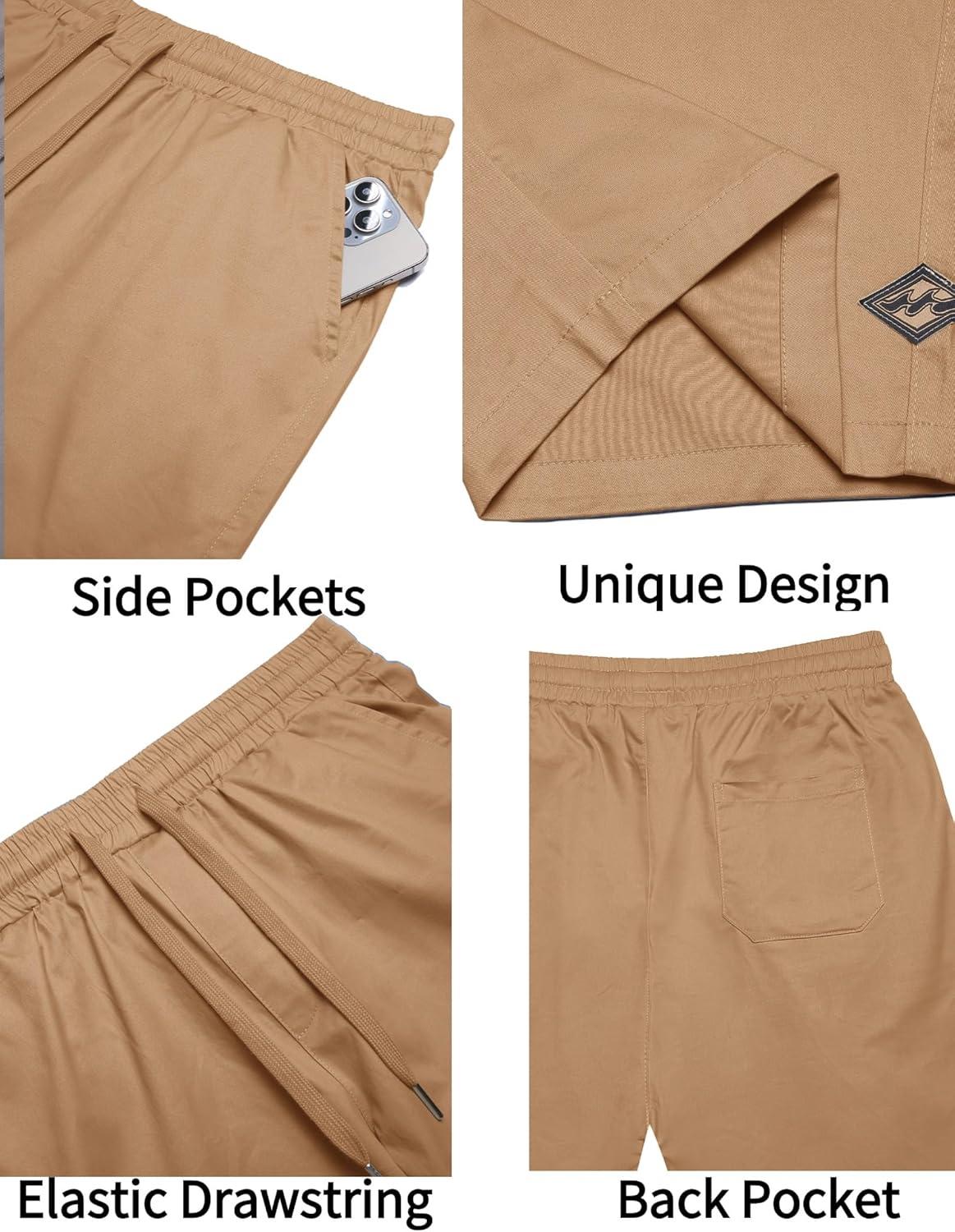 COOFANDY Mens Casual Shorts Cotton Elastic Drawstring Shorts Summer Beach Chino Shorts(Khaki)