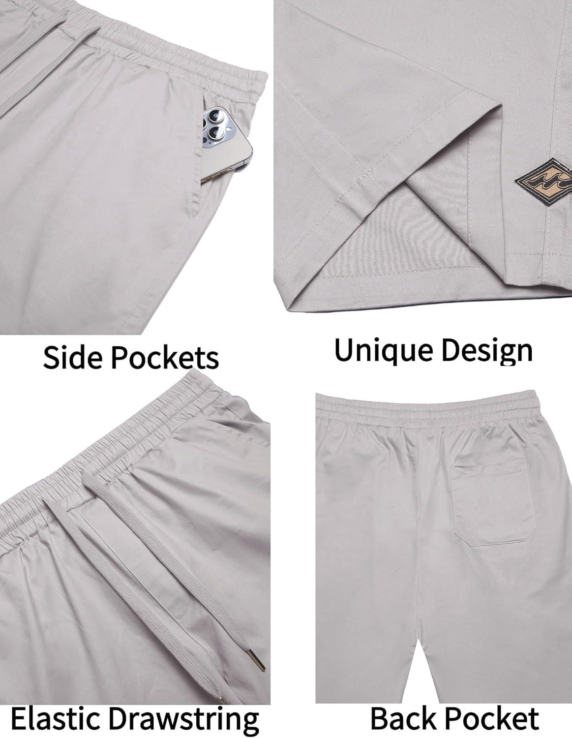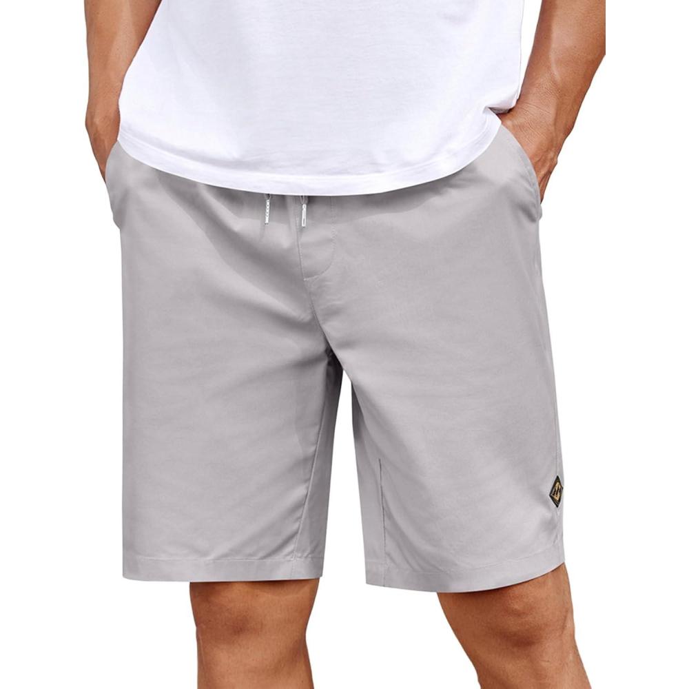 COOFANDY Mens Casual Shorts Cotton Elastic Drawstring Shorts Summer Beach Chino Shorts(Light Grey)