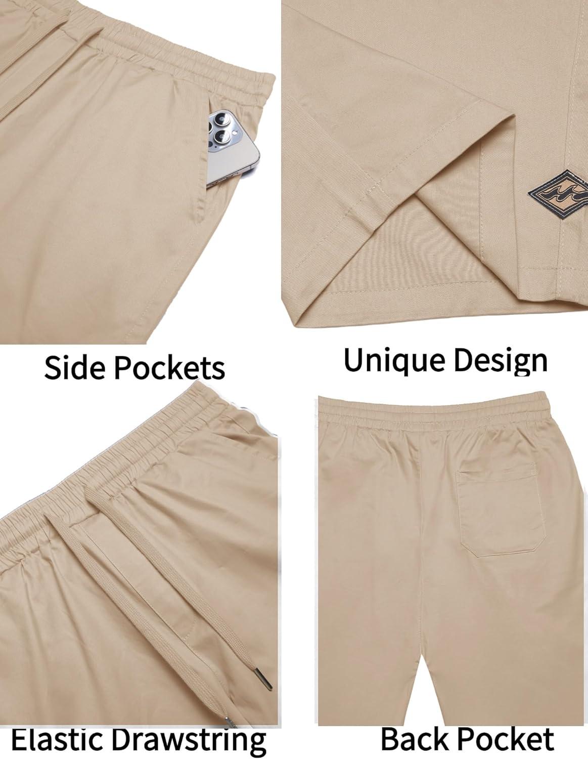 COOFANDY Mens Casual Shorts Cotton Elastic Drawstring Shorts Summer Beach Chino Shorts(Light Khaki)