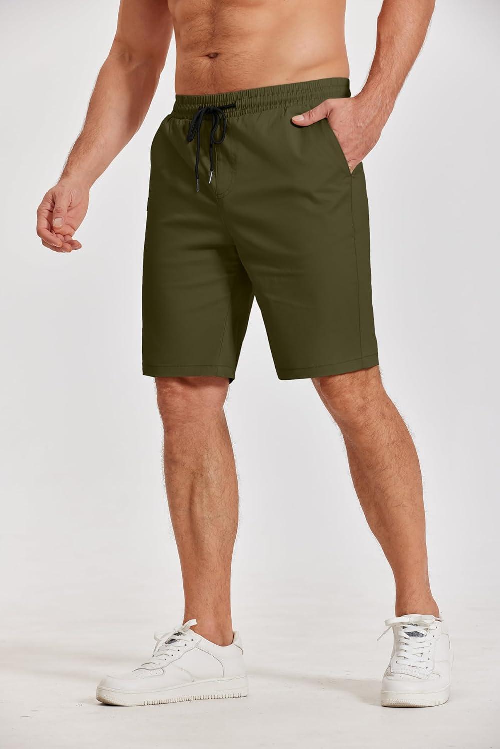 COOFANDY Mens Casual Shorts Cotton Elastic Waist Drawstring Shorts Lightweight Summer Beach Shorts(A-army Green)