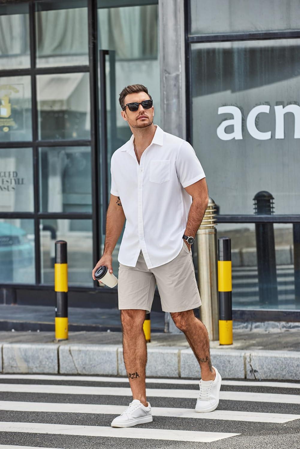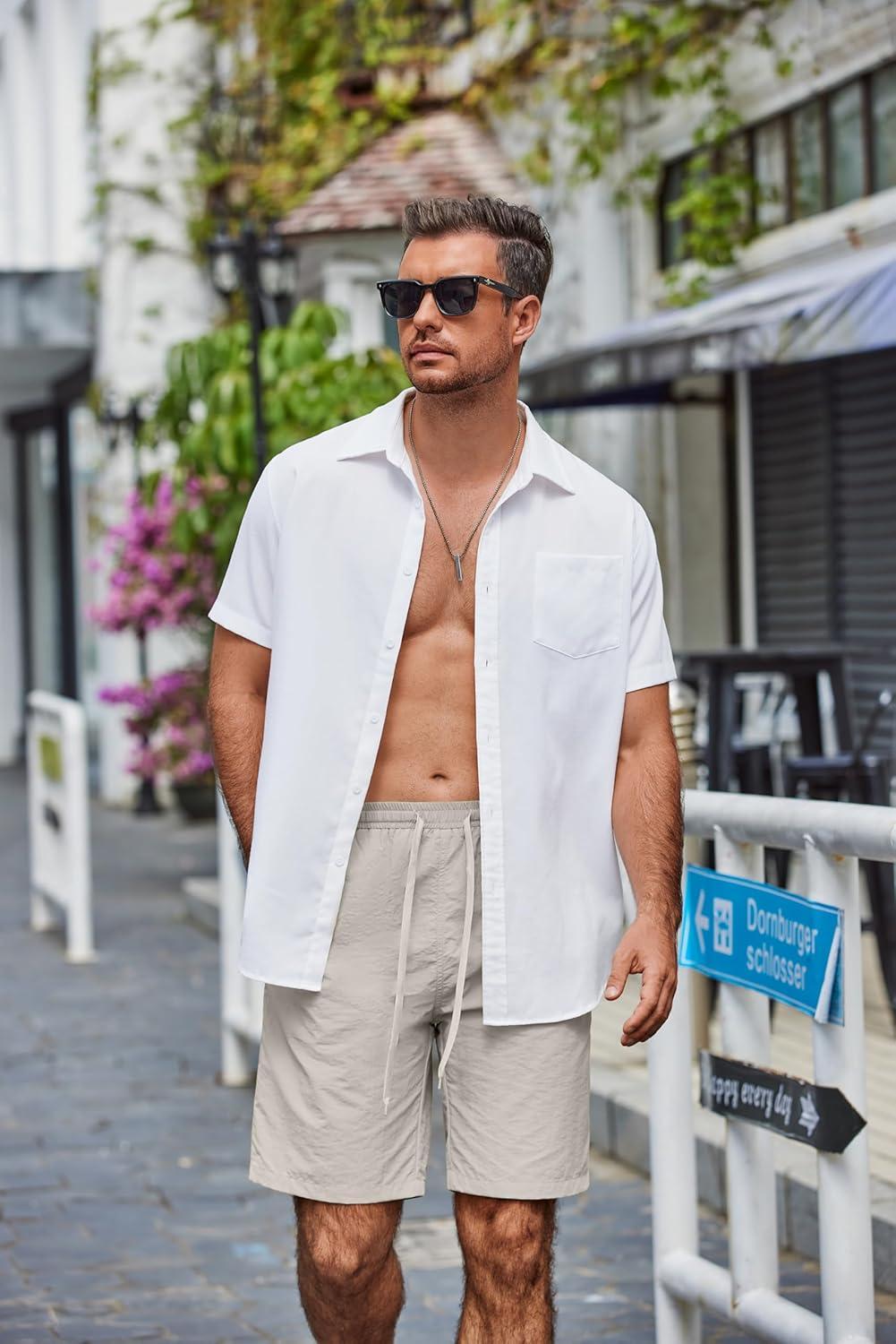 COOFANDY Men’s Casual Shorts Elastic Waist Drawstring Lightweight Dry Quick Summer Beach Shorts(Light Grey)