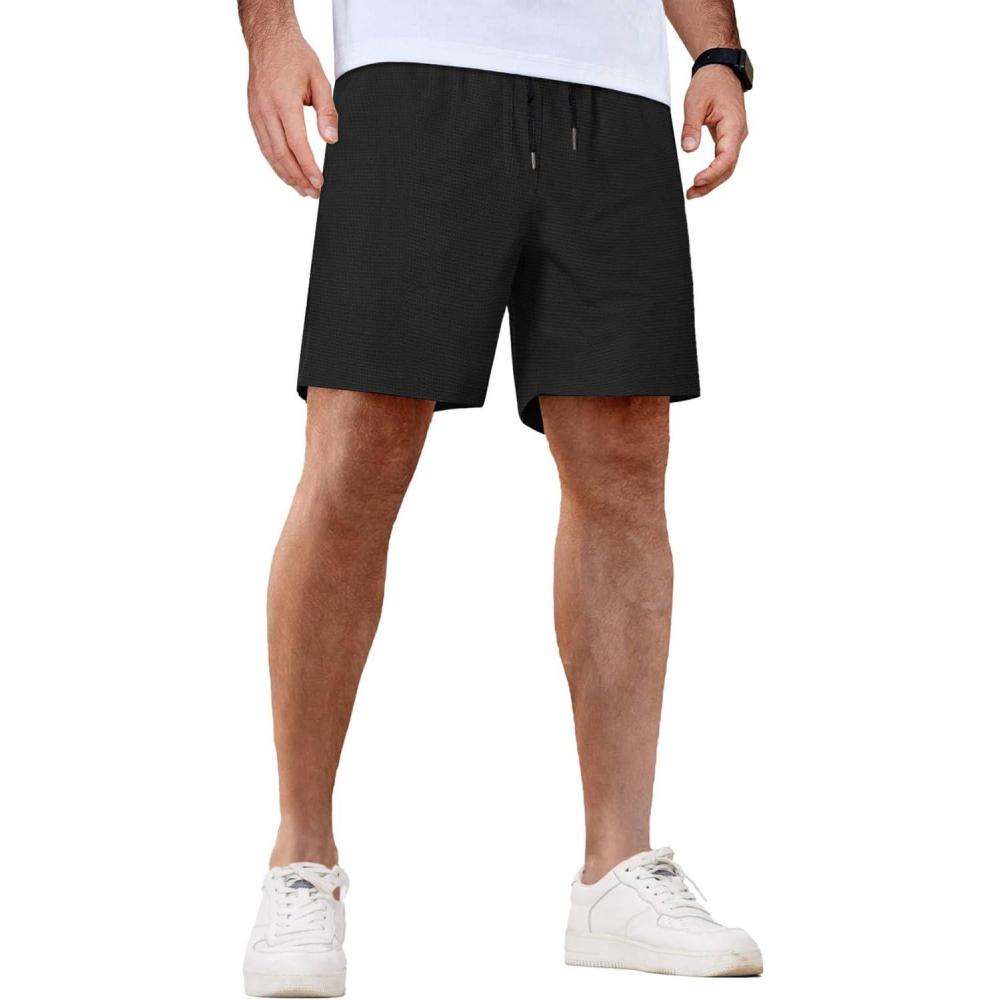 COOFANDY Men’s Casual Shorts Waffle Elastic Waist Drawstring Shorts Lightweight Summer Beach Shorts(Black)