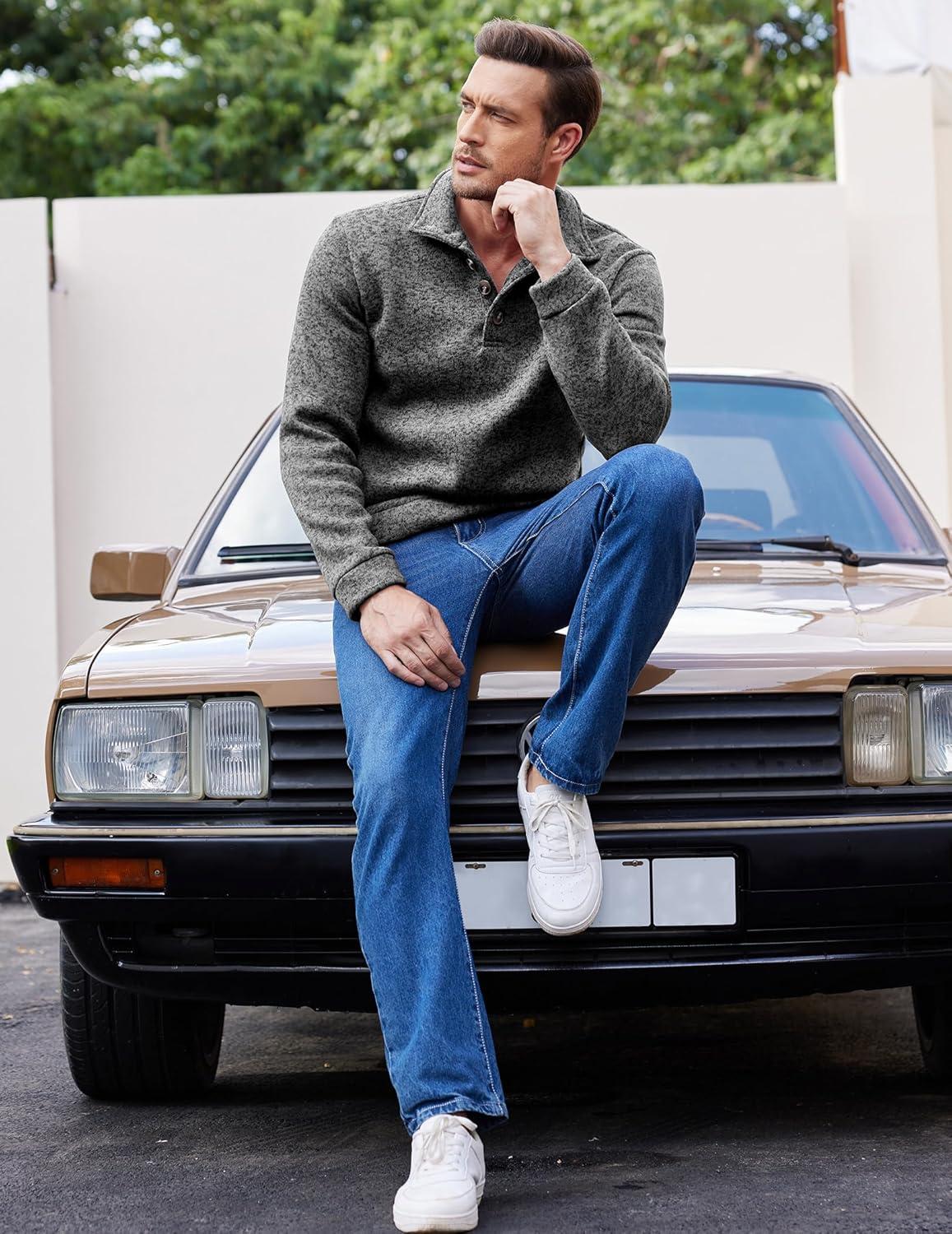 COOFANDY Men’s Casual Slim Fit Pullover Sweater Knitted Thermal Sweatshirt(Black and White)