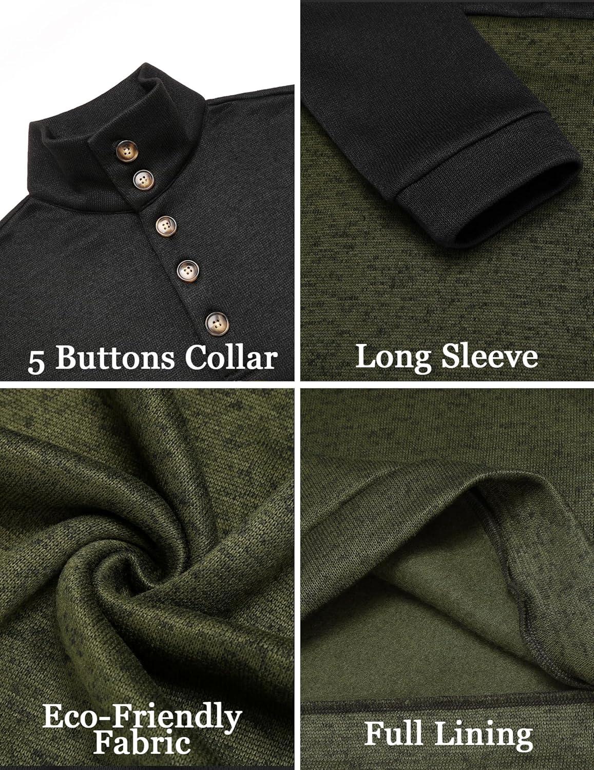 COOFANDY Men’s Casual Slim Fit Pullover Sweater Knitted Thermal Sweatshirt(Black Patchwork Army Green)