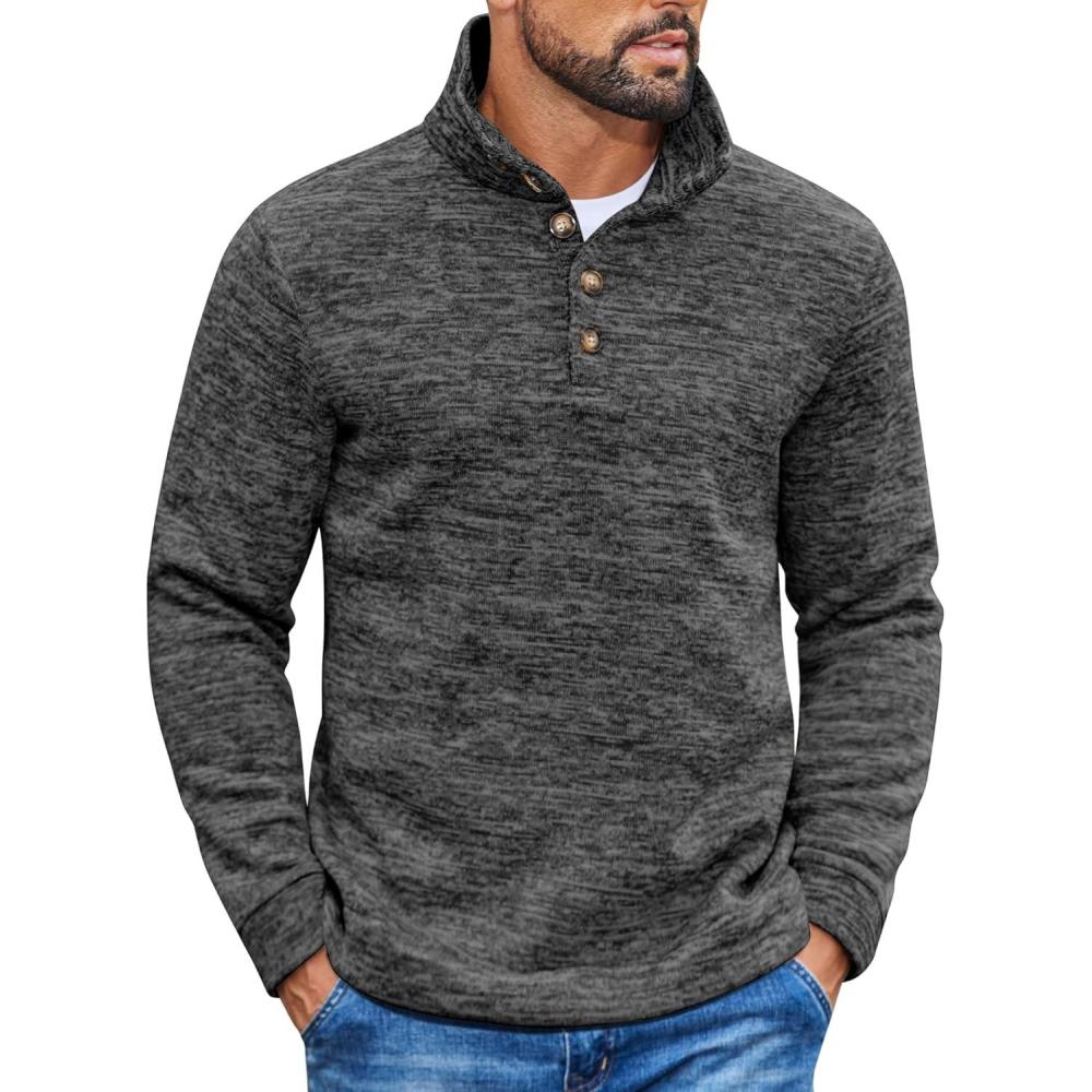 COOFANDY Men’s Casual Slim Fit Pullover Sweater Knitted Thermal Sweatshirt(Dark Grey)
