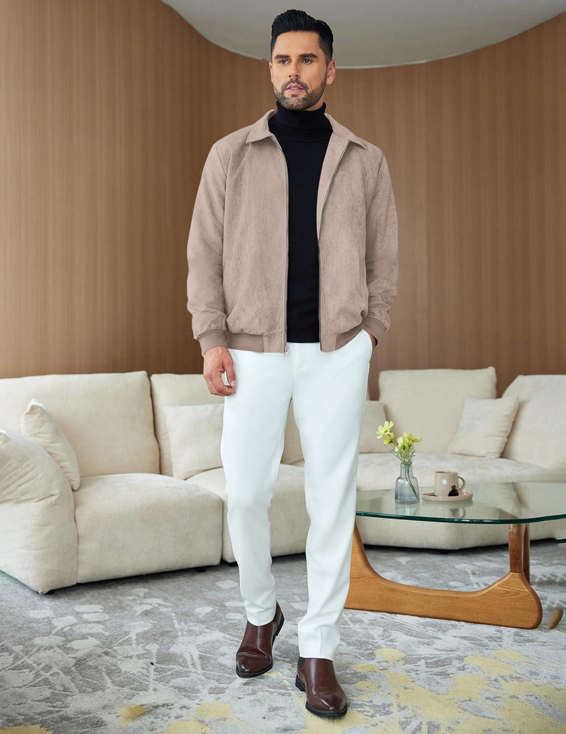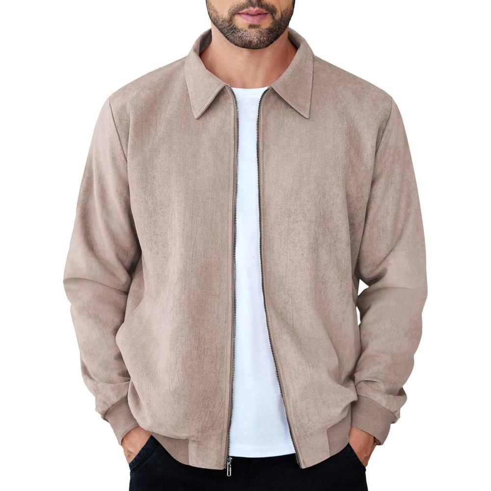 COOFANDY Men’s Casual Suede Bomber Jacket Lightweight Full Zip Up Jackets Vintage Faux Leather Jacket(Moon Grey)