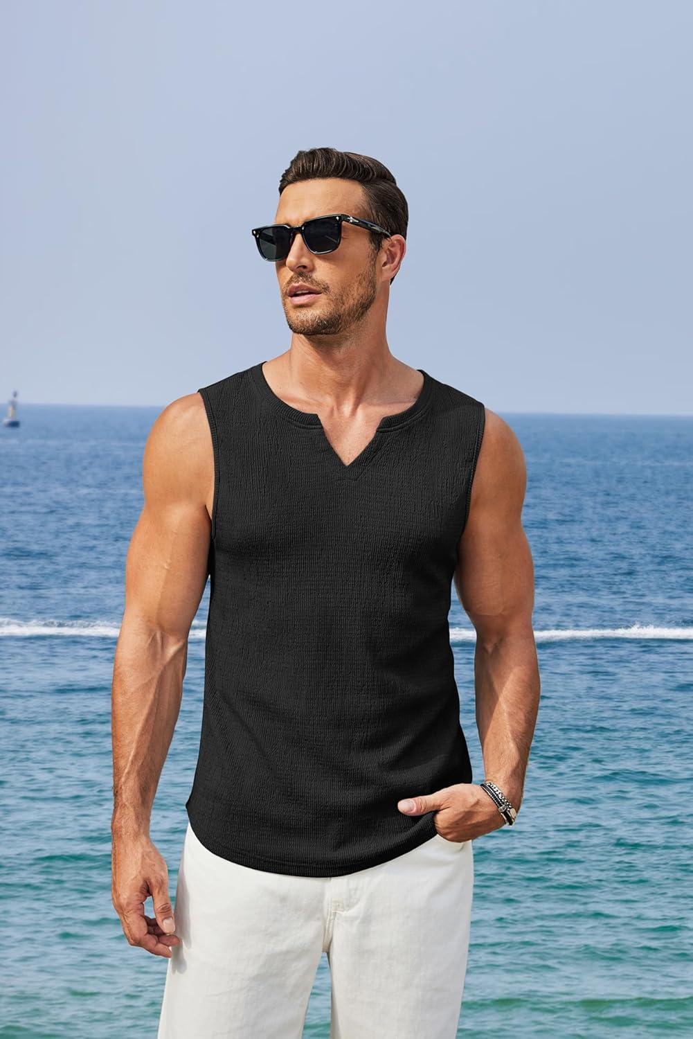 COOFANDY Men’s Casual Tank Tops Knit V Neck Sleeveless T Shirts 2 Pack Summer Beach Lightweight Muscle Tee(Black)