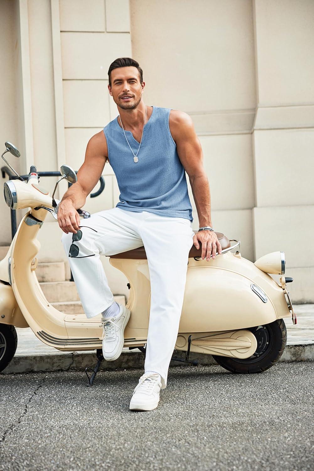 COOFANDY Men’s Casual Tank Tops Knit V Neck Sleeveless T Shirts 2 Pack Summer Beach Lightweight Muscle Tee(Blue)