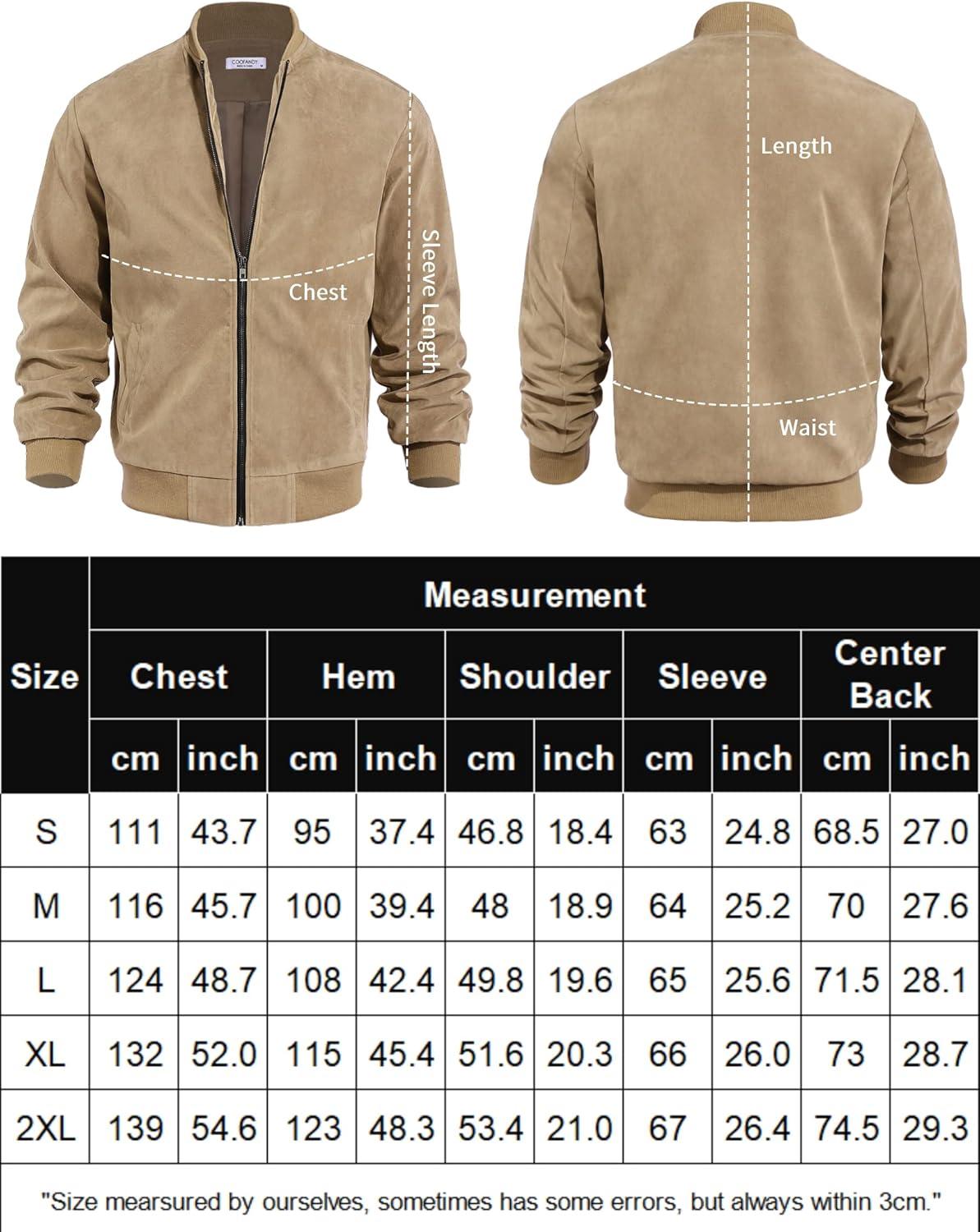 COOFANDY Men’s Casual Varsity Jacket Vintage Lightweight Suede Bomber Jackets(Light Khaki)