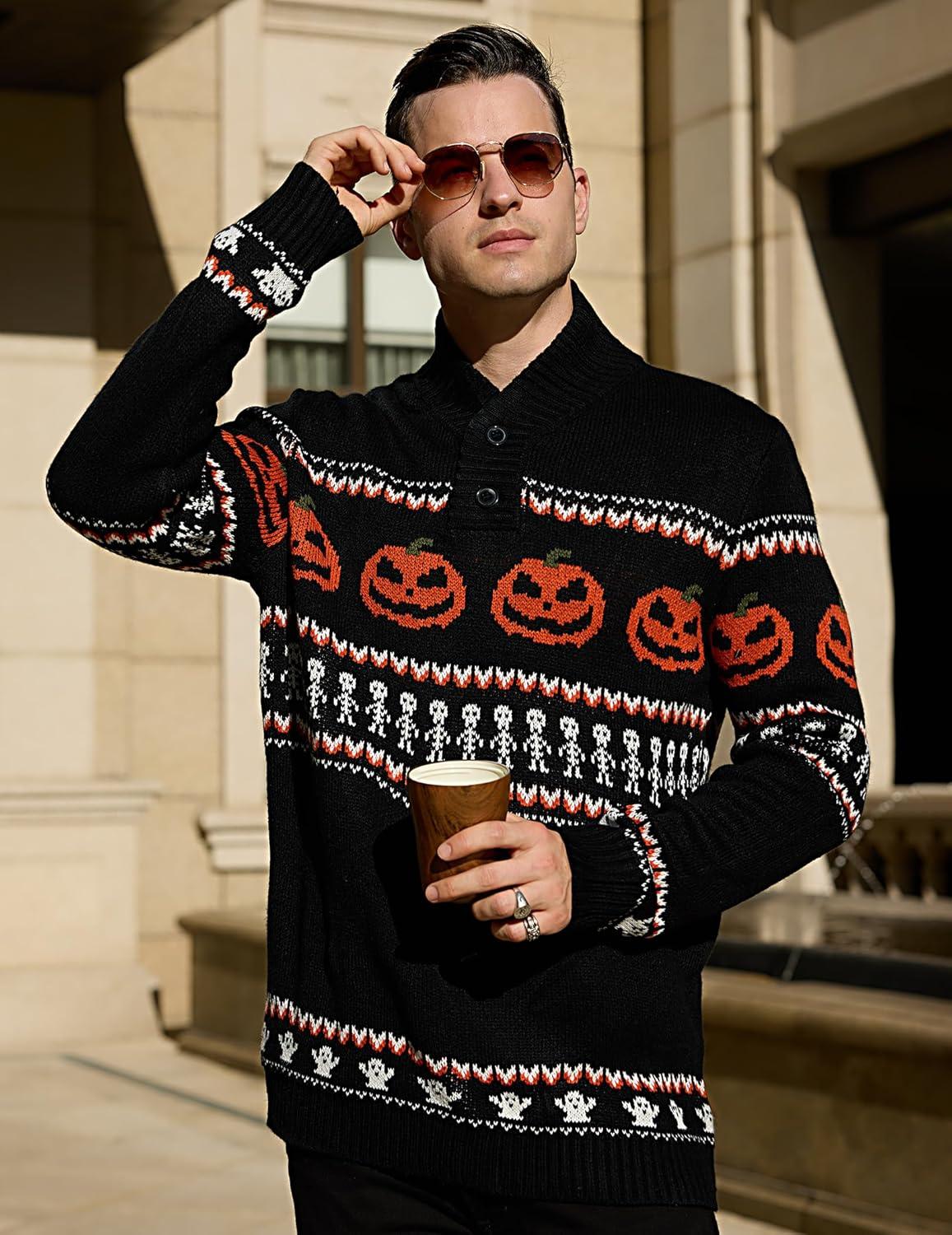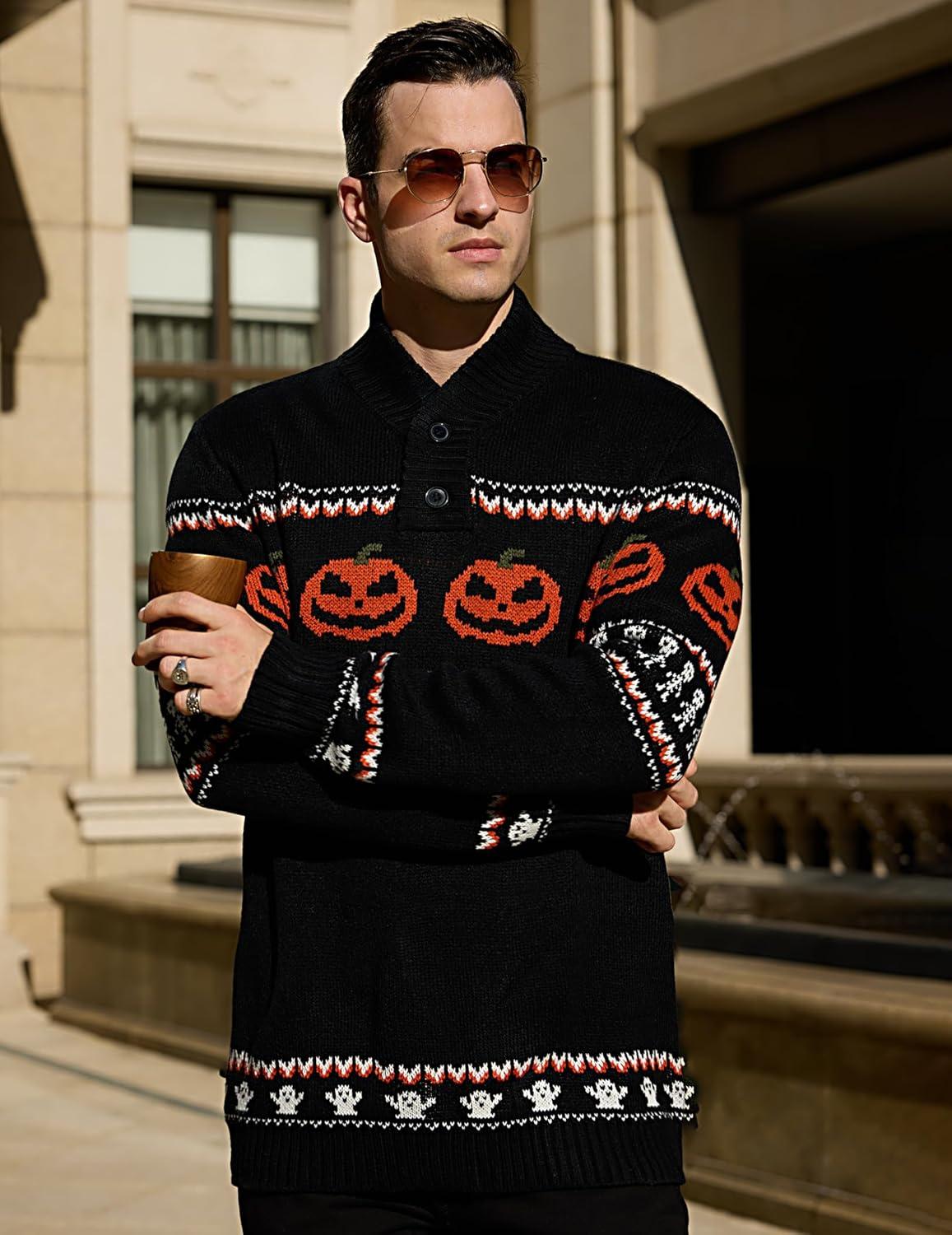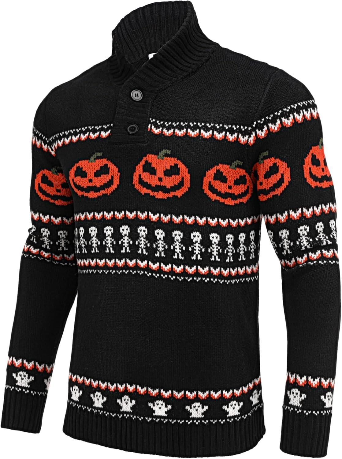 COOFANDY Men’s Christmas Sweater Ugly Knitted Xmas Sweaters Casual Snowflake Pullover Knitwear(Black Pumpkin)