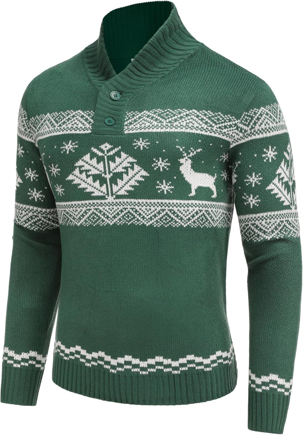 COOFANDY Men’s Christmas Sweater Ugly Knitted Xmas Sweaters Casual Snowflake Pullover Knitwear(C-christmas Green)