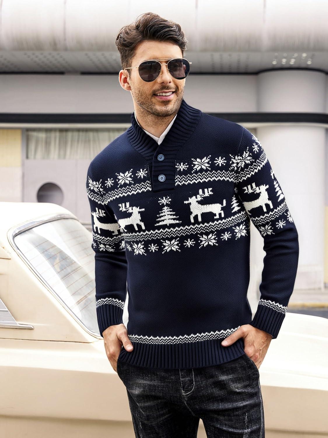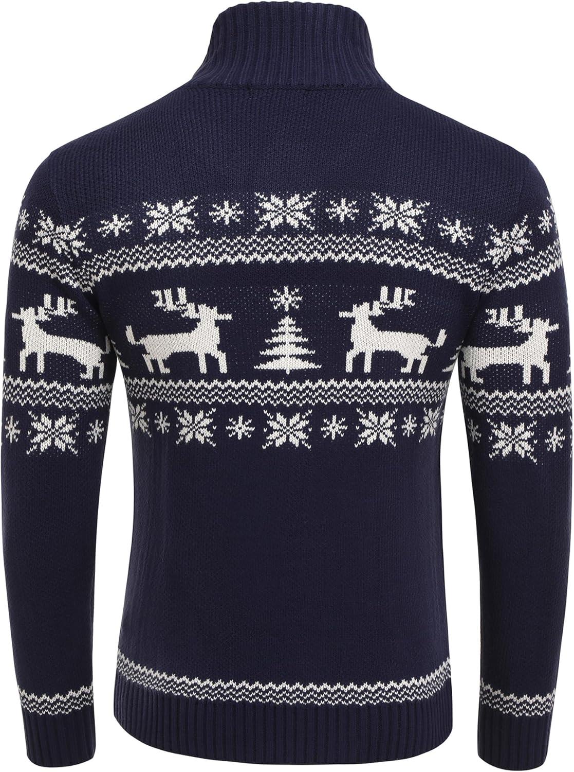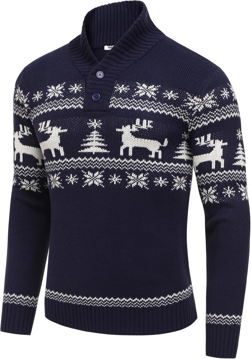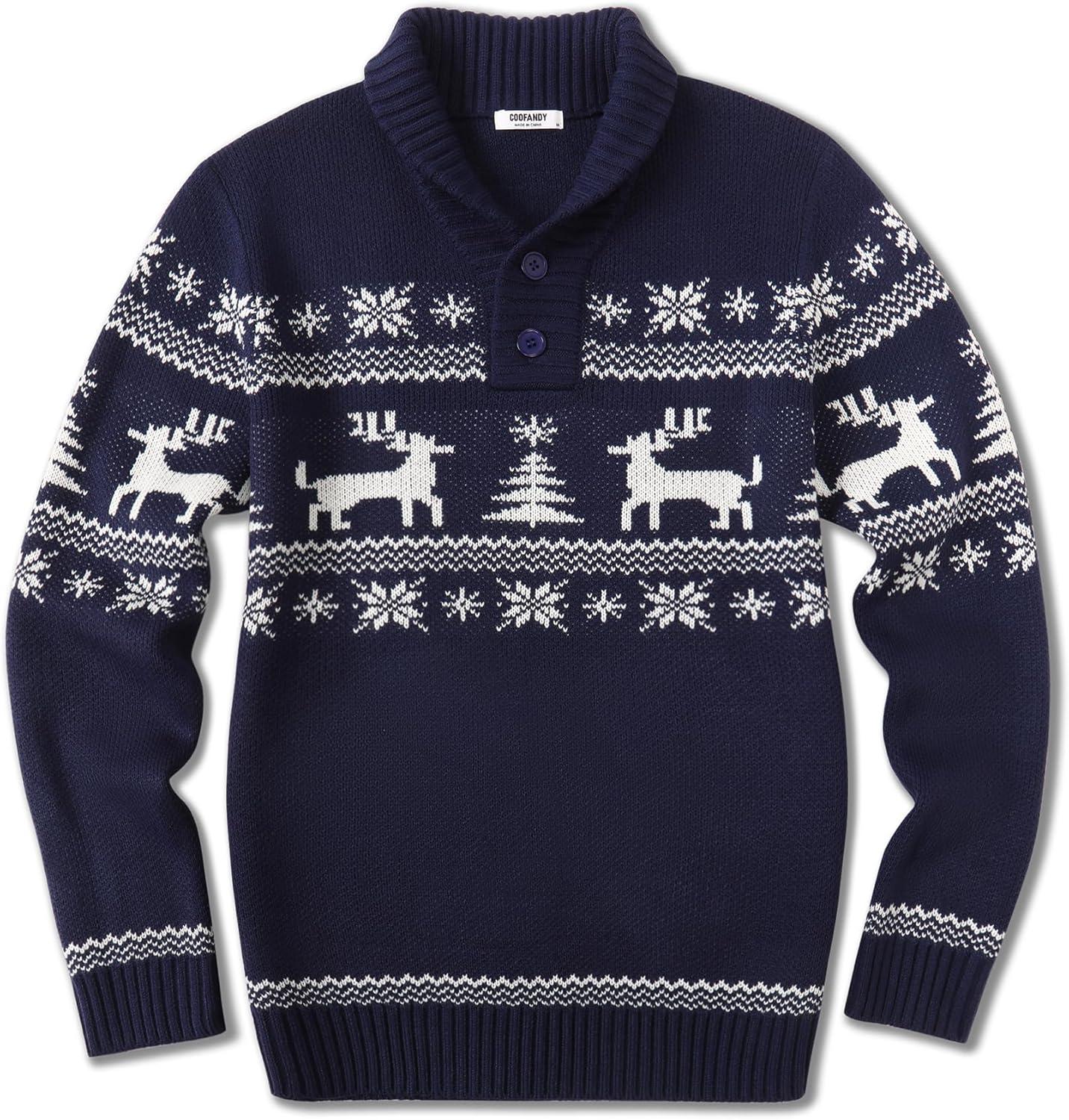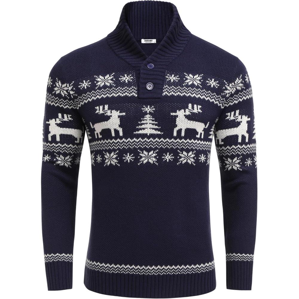 COOFANDY Men’s Christmas Sweater Ugly Knitted Xmas Sweaters Casual Snowflake Pullover Knitwear(Navy Dear)