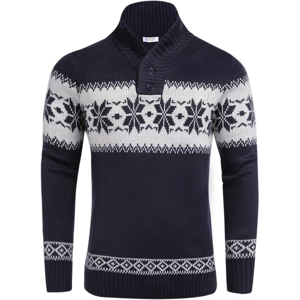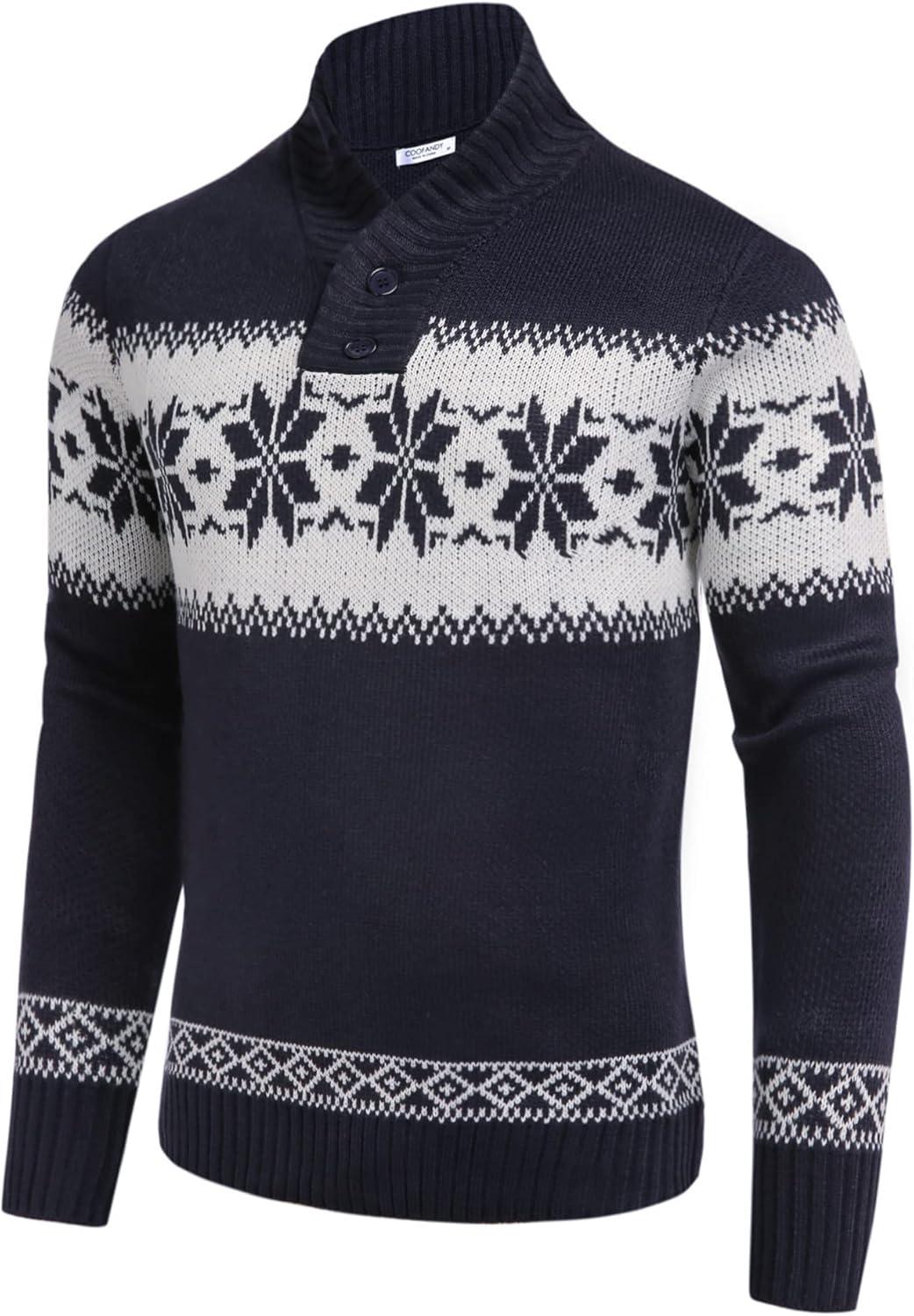 COOFANDY Men’s Christmas Sweater Ugly Knitted Xmas Sweaters Casual Snowflake Pullover Knitwear(Snorkel Blue)
