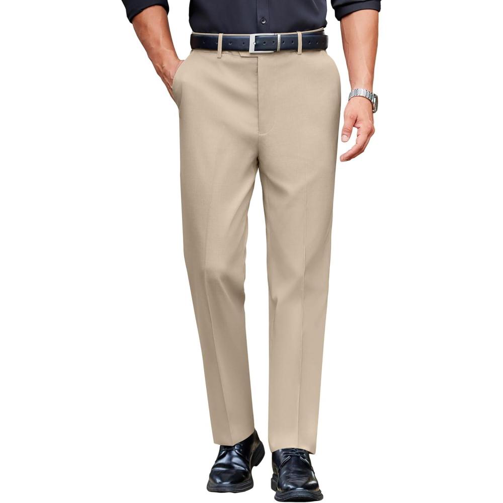 COOFANDY Mens Classic Casual Dress Pants Expandable Waist Suit Pant Slim Fit Flat Front Slacks(Khaki)