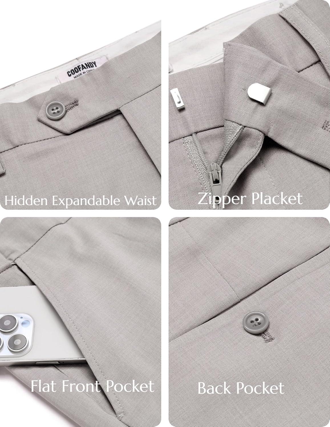 COOFANDY Mens Classic Casual Dress Pants Expandable Waist Suit Pant Slim Fit Flat Front Slacks(Light Grey)