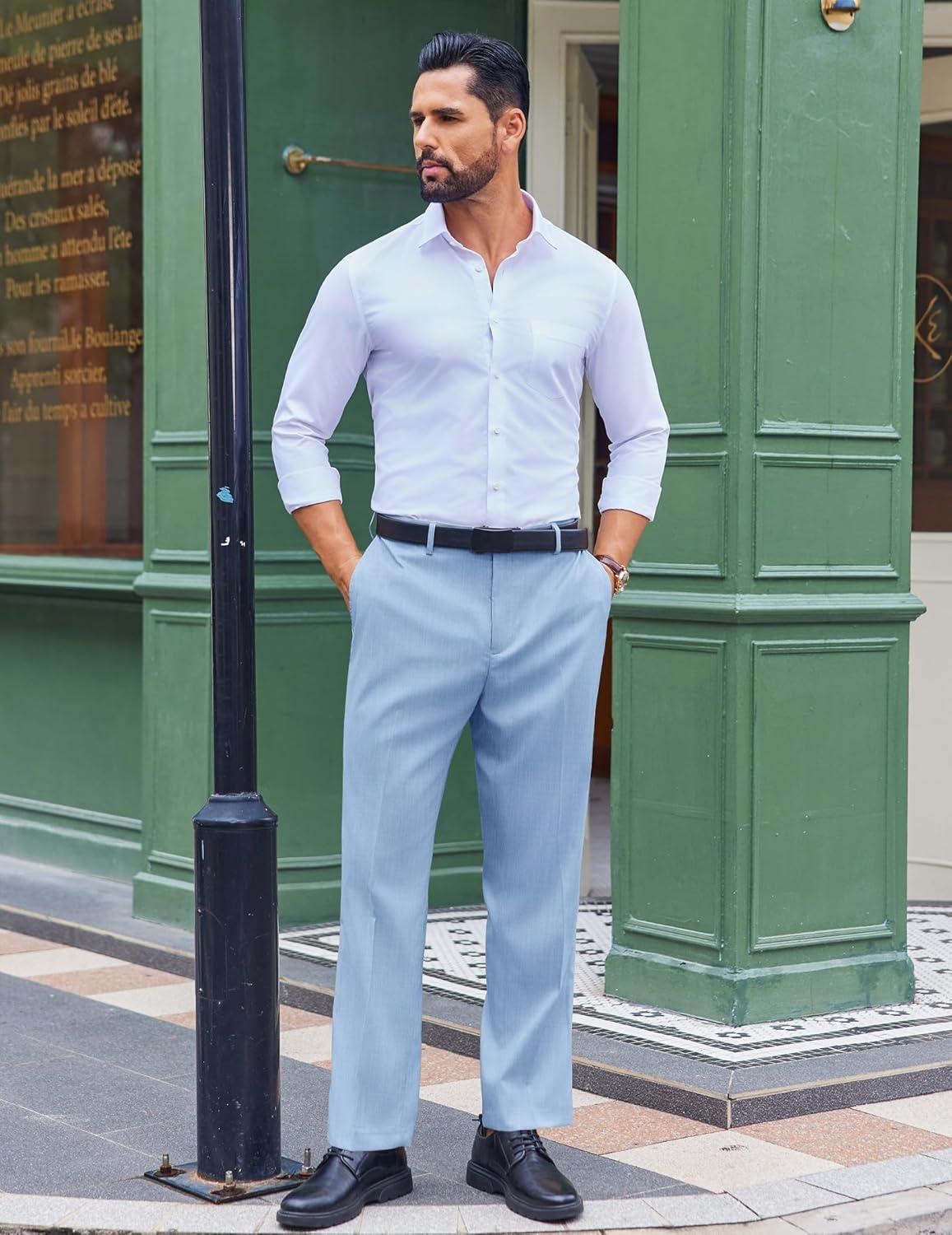 COOFANDY Men’s Classic Fit Dress Pants Flat Front Straight Casual Pant Expandable Waist Suit Pant(Light Blue)