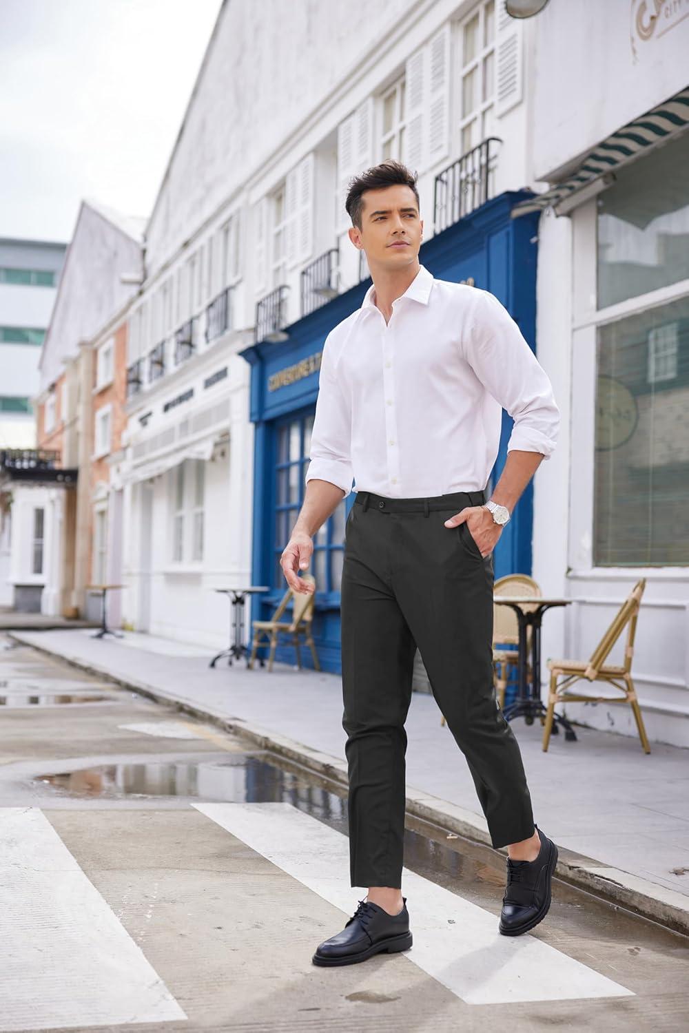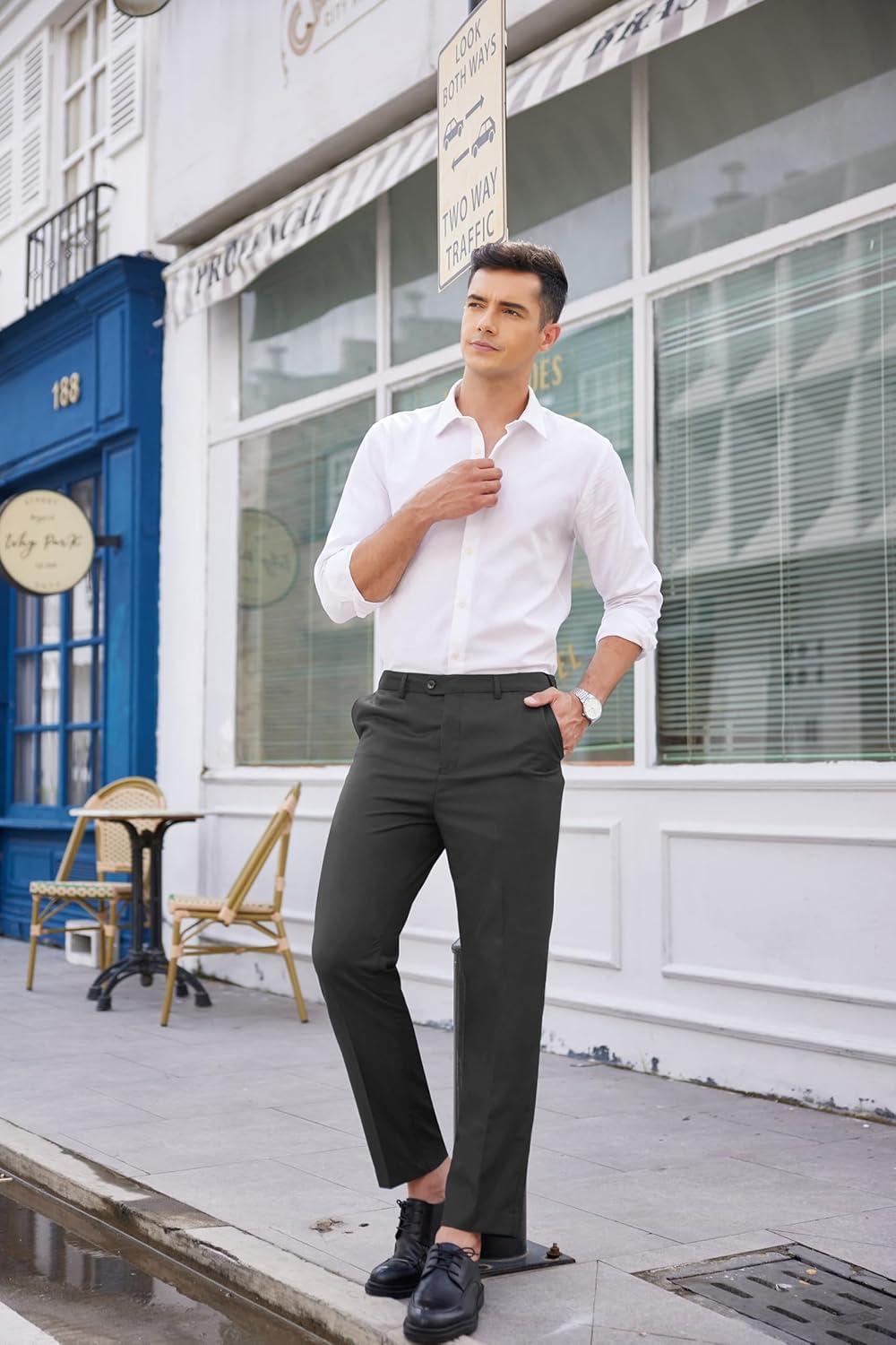 COOFANDY Men’s Classic Fit Dress Pants Flat Front Straight Formal Pants Wrinkle Free Expandable Waist Suit Pants(Dark Grey)