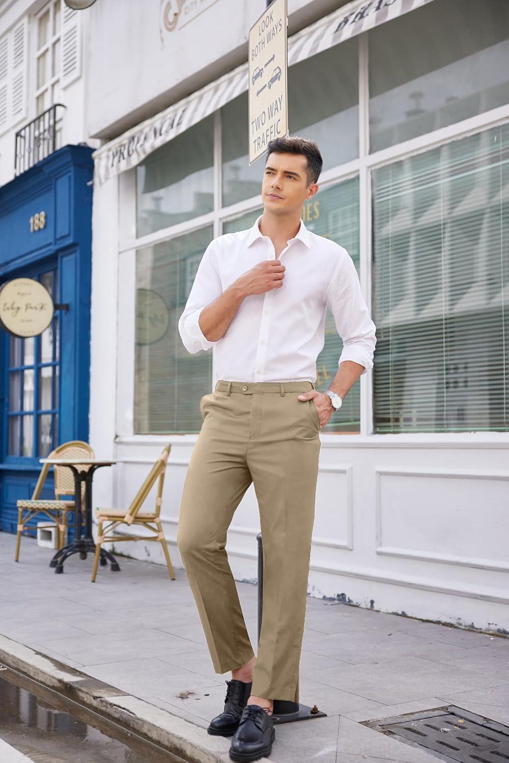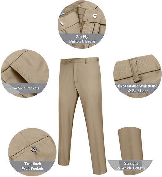 COOFANDY Men’s Classic Fit Dress Pants Flat Front Straight Formal Pants Wrinkle Free Expandable Waist Suit Pants(Khaki)