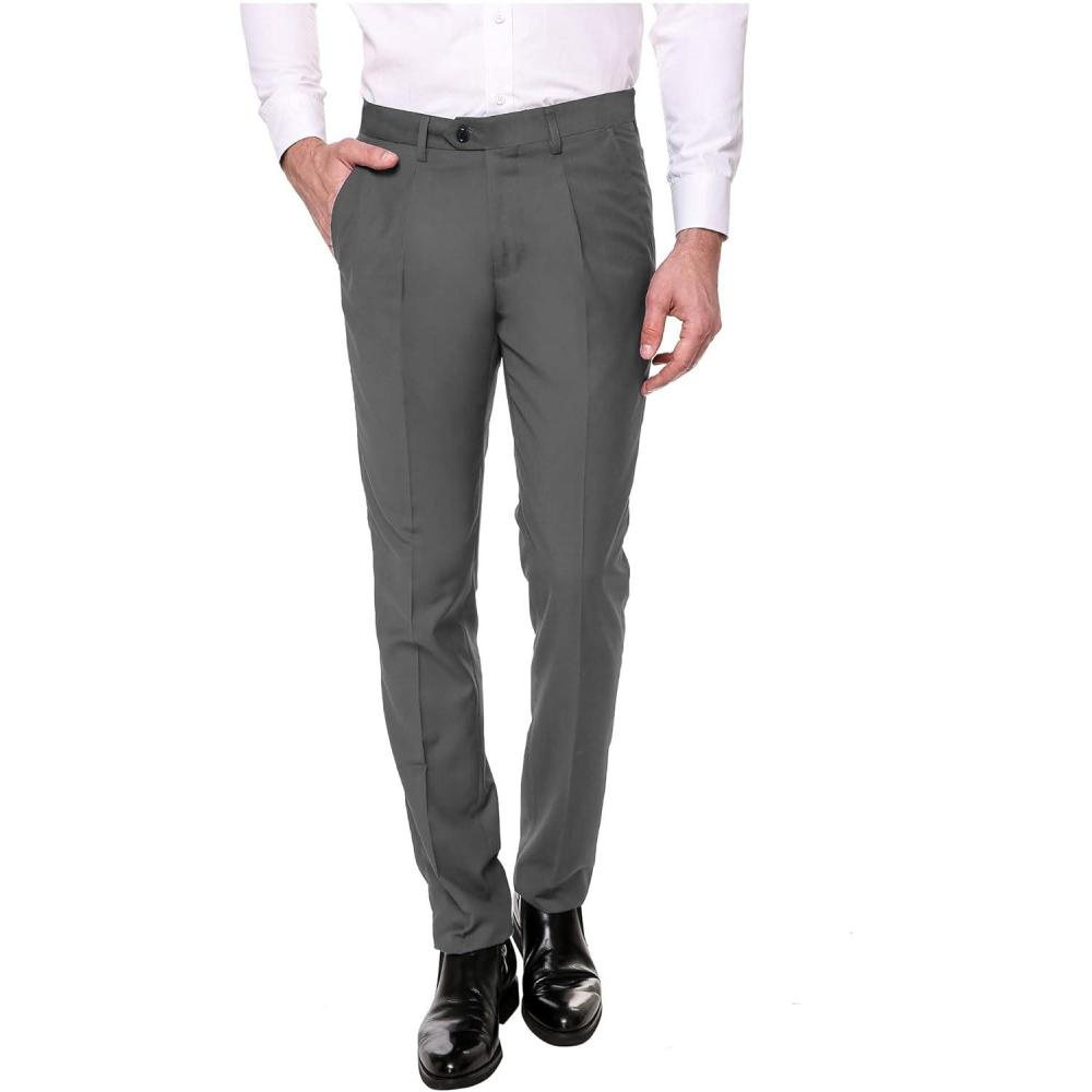COOFANDY Men’s Classic Fit Flat Front Dress Pants No Iron Premium Casual Pants Expandable Waist Suit Pants(Grey)