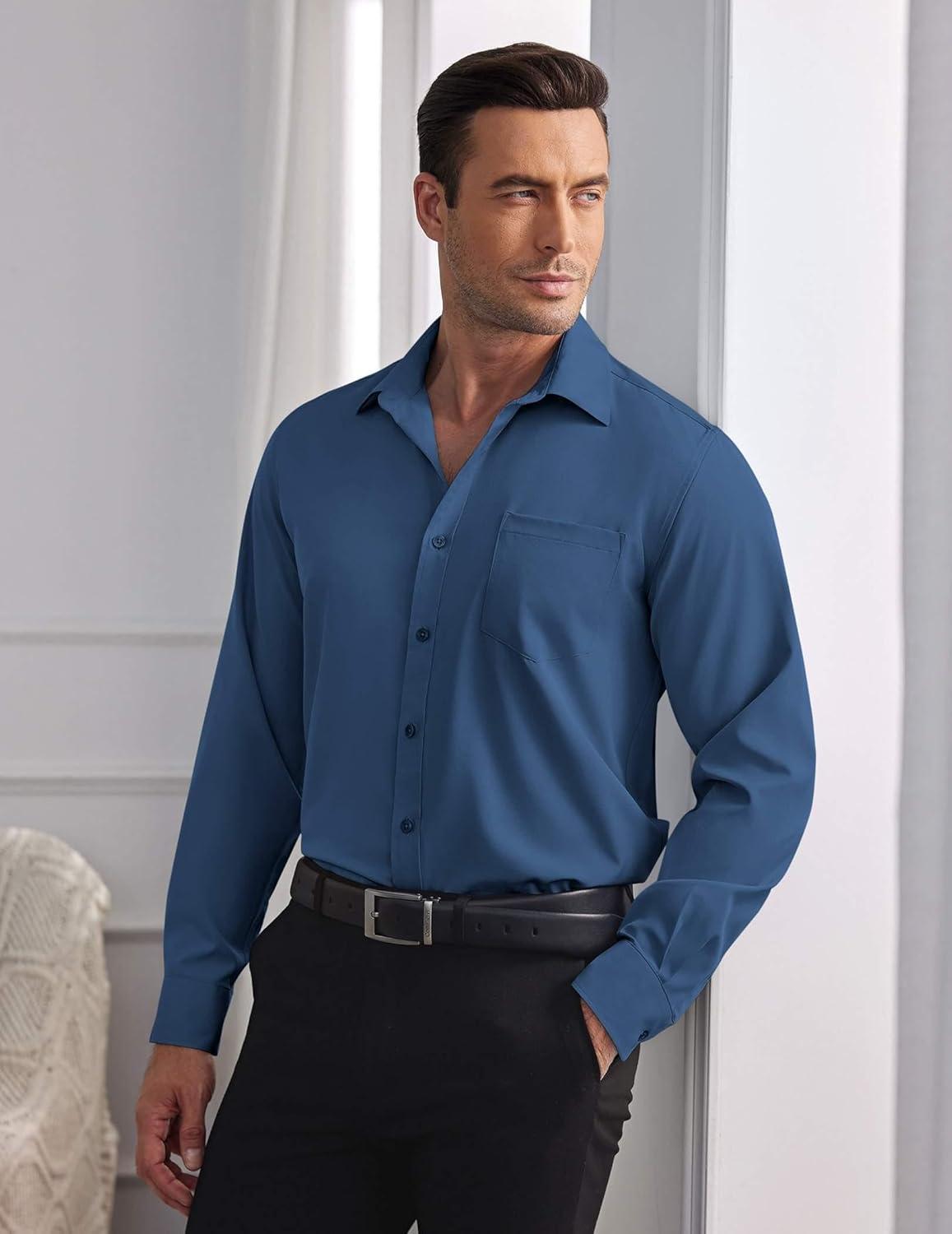 PREMIUM QUALITY MATERIAL:Crafted from breathable, lightweight, and micro-stretch fabric, our long sleeve button down dress shirts offer wrinkle-free wear and ultimate comfort. Whether you're at the office, a formal event, or a casual outing, these shirts ensure you stay cool and composed, even during the hottest days.